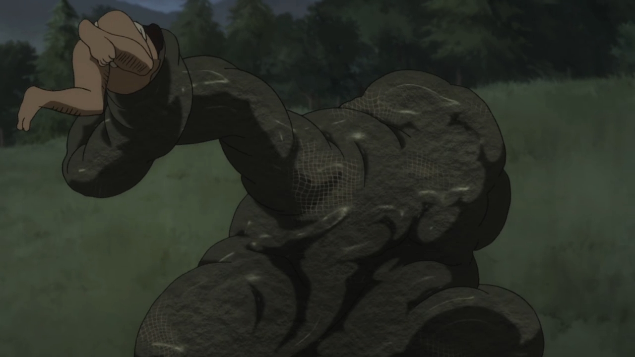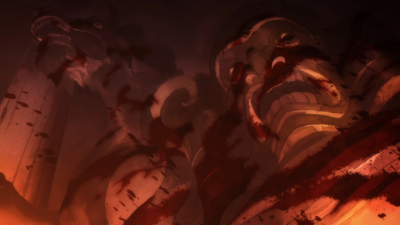 Wait, wasn’t Hyakkimaru born without limbs, eyes, etc? Yep, but in this universe, several characters just have the ability to sense evil even if they’re blind. Maybe it’s something you can learn. As for his limbs, he has a bunch of prosthetics that he must have gotten from a certain Dr. Jukai. We see this guy going from battlefield to battlefield, helping victims out by replacing their lost body parts with prosthetics. I can only assume that the good doctor had stumbled upon Hyakkimaru as baby sixteen years ago, and found the strength within himself to raise the child. As a result, our hero almost looks human from a distance. Anyways, the one action scene in the first episode is rather short-lived and, well, not very well-animated. After saving Dororo, Hyakkimaru lures the sludge-like demon onto the bridge. According to the eyecatch at the end of the episode, the demon is named Deiki. As its chasing after our hero, he starts cutting up the wooden bridge until the whole thing becomes unstable and collapses into the water. And just like that, Hyakkimaru has won? Huh? What happened to Deiki? Did it drown? If that’s the case, didn’t it emerge from the river in the first place? I think this is my biggest problem with the show. Action is all fine and dandy, but MAPPA doesn’t exactly have a good track record on that front. The last Garo series was kinda poorly done.