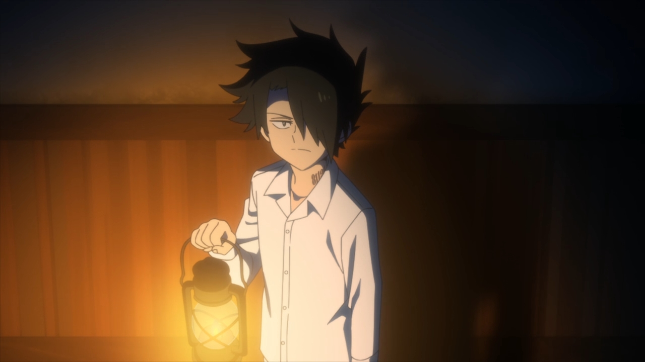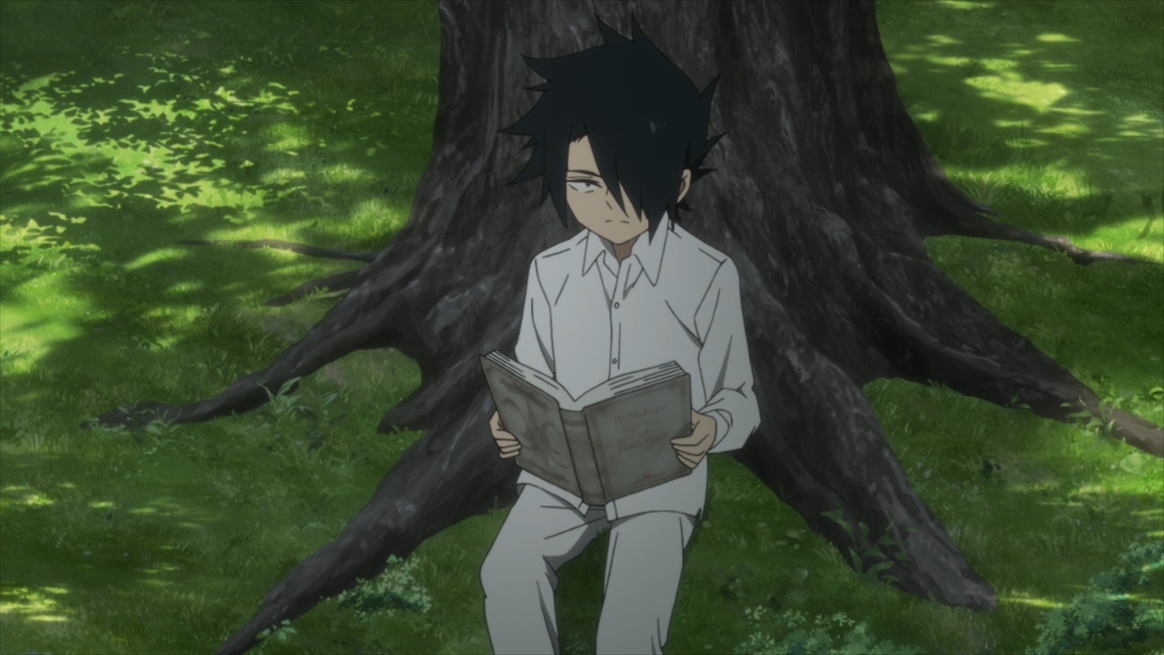 Emma and Norman realize that they have to escape lest they get eaten themselves, but the girl won’t abandon her family. She won’t leave the other children behind. It’s going to be hard the children to leave, though. What are you going to do? Just tell them the truth and hope that they believe you? Emma and Norman couldn’t even bear to tell Ray what they had discovered… but they might not need to. Ray gives a knowing look when the two children ascend the stairs. Repeatedly throughout the episode, Ray keeps telling his friends that the adults are lying to them with regards to the gate and the outside world. He doesn’t play with the other children. When they run off to play tag, he sits alone under a tree and reads. Everyone has big dreams for when they grow up. A kid wants to see trains, another kid wants to date cute girls, Norman wants to travel the world, so on and so forth. When they ask Ray what he would like to do, he just goes, “…well, I’d have to survive first.” He knows. He totally knows. He’s always known. But how does he know? Did he also discover the truth? Or did someone tell him the truth? I guess we’ll find out later.
