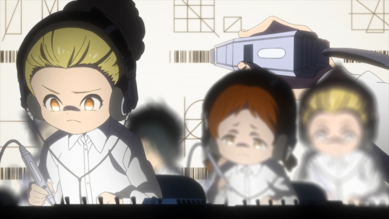 Emma, Norman, and Ray live in an orphanage managed by a woman they refer to as only Mama. They are joined by 35 other children, but that number is scheduled to decrease by one. Every so often, if you’re “lucky,” a family will adopt you, but you shouldn’t despair. Everyone eventually leaves the orphanage by the time they’re 12. You just gotta be patient. In the meantime, however, life is idyllic enough for the young children. They’re well-fed, well-clothed, and well… hm, I dunno if I would call this education. The children have to take this weird test where they scan bar codes beneath some geometric shapes. I have no idea what this is supposed to accomplish. But other than that, life is good at the orphanage. The kids only have each other, so it’s like one big family. Why would you even want to leave? Well, you don’t. Today, it’s Conny’s turn, and it’s clear that she doesn’t want to go. After all, something’s not right. Usually, you know who your foster parents are going to be. When these kids get adopted, they have no damn clue who they’re going to be living with. As a result, why would a six-year-old child want to leave all her friends behind?