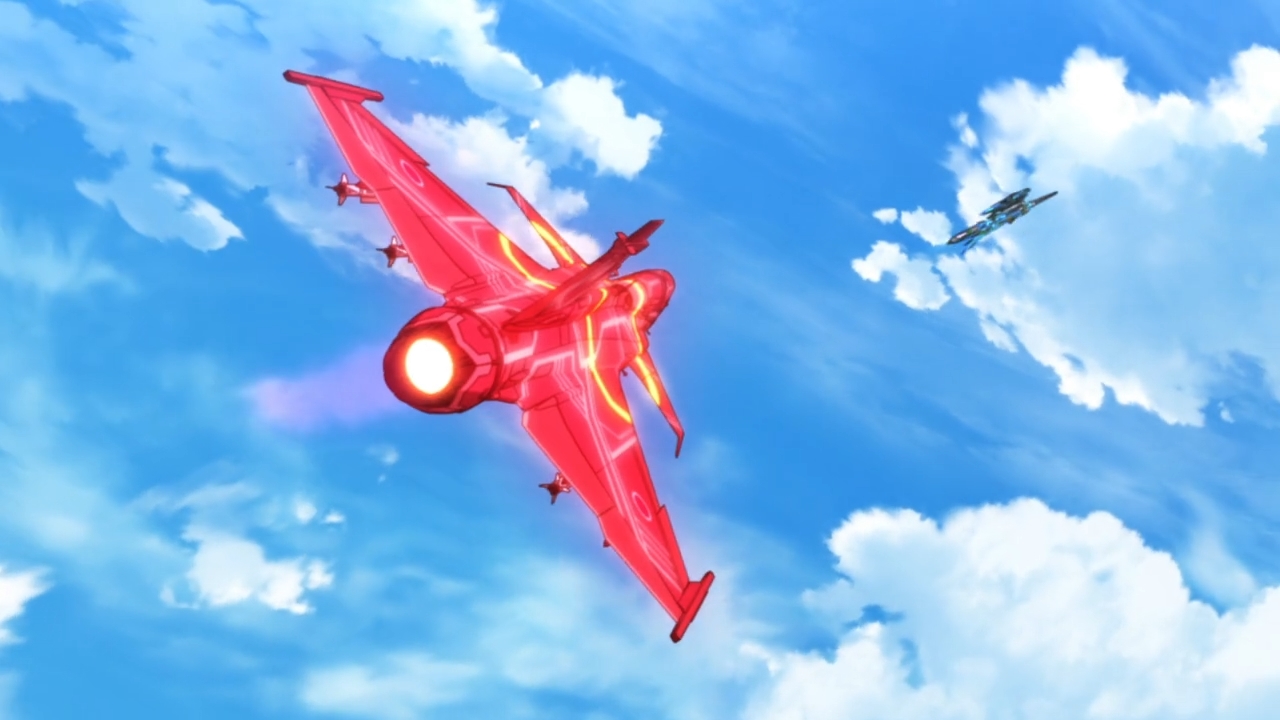 Things are going badly for the refugees when our heroine decides to jump into action. Piloting her hot pink Gripen, she proceeds to eliminate the rather small Xi force in no time. But as soon as the battle is over, the hot pink aircraft goes down… kinda. From my perspective, it looks to be floating perfectly fine on the waters. Plus, even if it was really going to sink into the ocean depths, you have to assume that her people would rescue her. Nevertheless, Kei takes it upon himself to jump out of the evacuation boat, swim towards the hot pink aircraft, and try to “save” the pilot inside. Y’know, just anime protagonist things. That’s when the girl emerges, kisses him, mutters “Nova Era,” faints, and… and nothing. I’m serious. After the OP, we see the guy waking up in a room somewhere in Japan. What’s with this narrative flow? Did he get knocked out after she kissed him? Did he somehow get dragged back to his evacuation boat? Why am I missing chunks of the story?