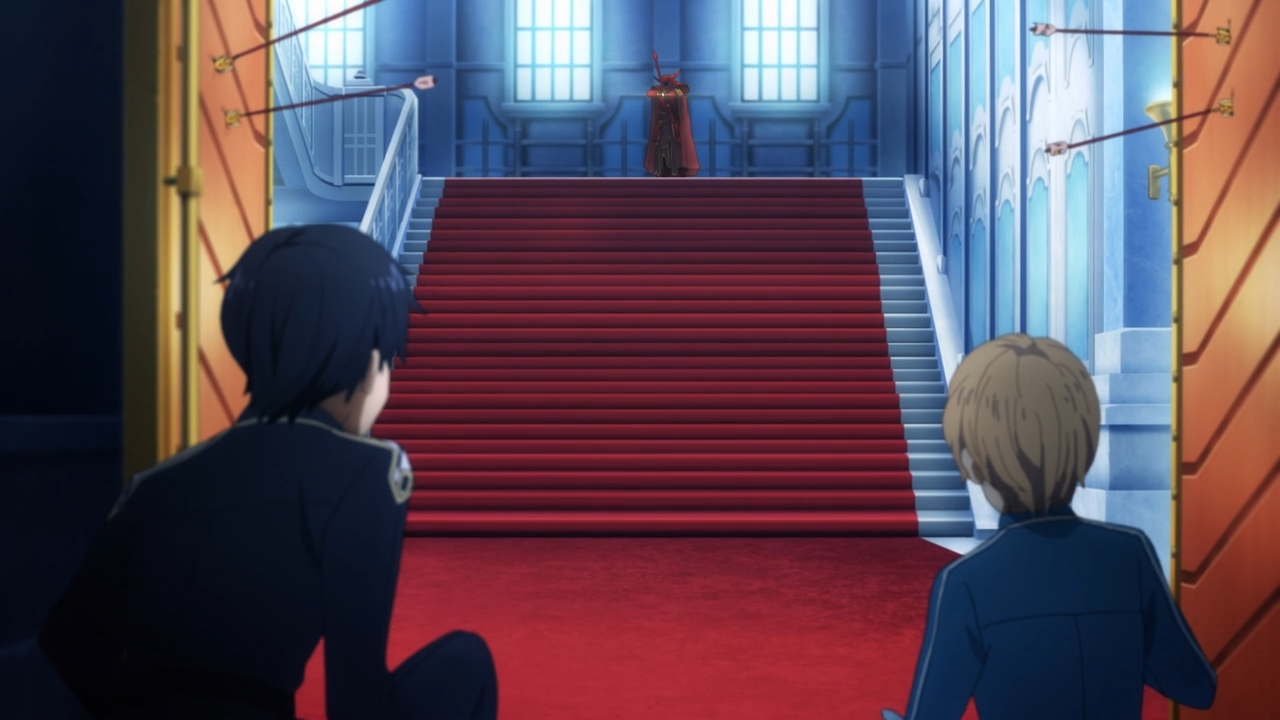 But before I talk about Eugeo, let’s set the stage. After two painful episodes full of exposition — why did Cardinal tell Kirito everything but not Eugeo? — the boys had to climb nearly all the way to the bottom of the tower in order to retrieve their weapons. And now, they have to climb all the way back up the tower in order to rescue Alice and presumably defeat the big, bad pope lady. Remember: religion, bad! Technology, good! On paper, this premise sounds like something straight out of one of those inane dungeon crawling JRPGs. Ascend a floor, explore, fight some baddies, repeat. Luckily, this tower appears to be mostly empty. Oh, there are still baddies to fight, but just the Integrity Knights. And since Alice is Synthesis Thirty, there really isn’t a whole lot for Kirito and Eugeo to worry about. At one point, they even have the luxury to take a break, sit their butts down on the stairs, and eat lunch. Big, bad pope lady sure doesn’t really worry all that much about security, huh?