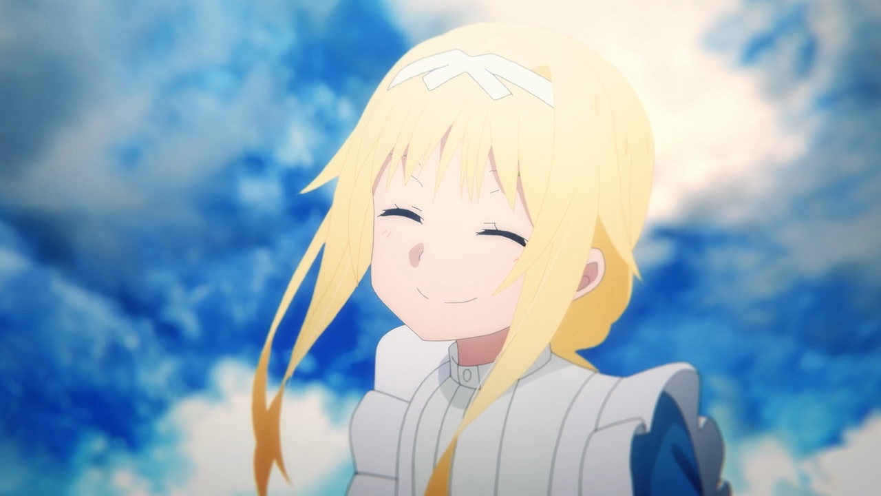 Obviously, I hate all the “System Call” nonsense in this series. No, I get it. They’re in an MMO, and when they utter those words, this is akin to executing a command within a program. It’s also analogous to casting a spell. You utter the magic words and voila! You could argue that wizards and witches are doing the same thing. They just don’t realize that their world is programmatic in a way. But that’s the thing, though. Why bog every battle scene down with a relentless barrage of characters yelling out “System Call!” over and over? We already know how it works. Just have the magical fireball show up. Imagine if a wizard had to yell out “Fireball!” every time he wanted to cast a fireball. That’s stupid. Then again, a lot of the mechanics in the Underworld seems stupid. When Eugeo closes in on Deusolbert, he thinks back to Kirito’s advice from episodes ago. He remembers how he needs to infuse his weapon with the power of belief! As a result, he starts thinking about Alice, and this somehow gives him the strength to beat the Integrity Knight. Lame.