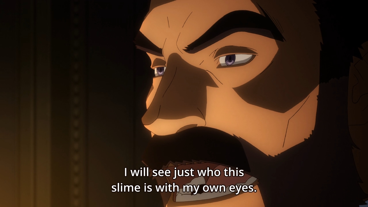 Eventually, news of the orcs’ defeat reaches Gazel. Remember him? He’s king of the dwarf city despite the fact that he doesn’t remotely look like a dwarf. As always, when one nation suddenly becomes powerful, the other nations become wary. So he’s come to see Rimuru personally in order to suss out whether or not the slime might become a threat to Dwargon in the future. So how do we settle this? By having a swordfight, of course. Christ, what a bunch of meatheads. Well, Rimuru is successful in blocking Gazel’s signature move, so that ends the short-lived competition. Not only that, the dwarf sovereign is now convinced that the slime is a good person. Haha, okay. That’s what we need to do. Someone should just challenge Donald Trump to a duel. Afterwards, it’s more talking. Blah blah blah, let’s work together, form a treaty, whatever. Rimuru also finally names his nation. In any other show, I would wonder if Gazel’s intentions are entirely pure. But considering how this is That Time I Got Reincarnated as a Slime, I’m sure everything’s fine and dandy.