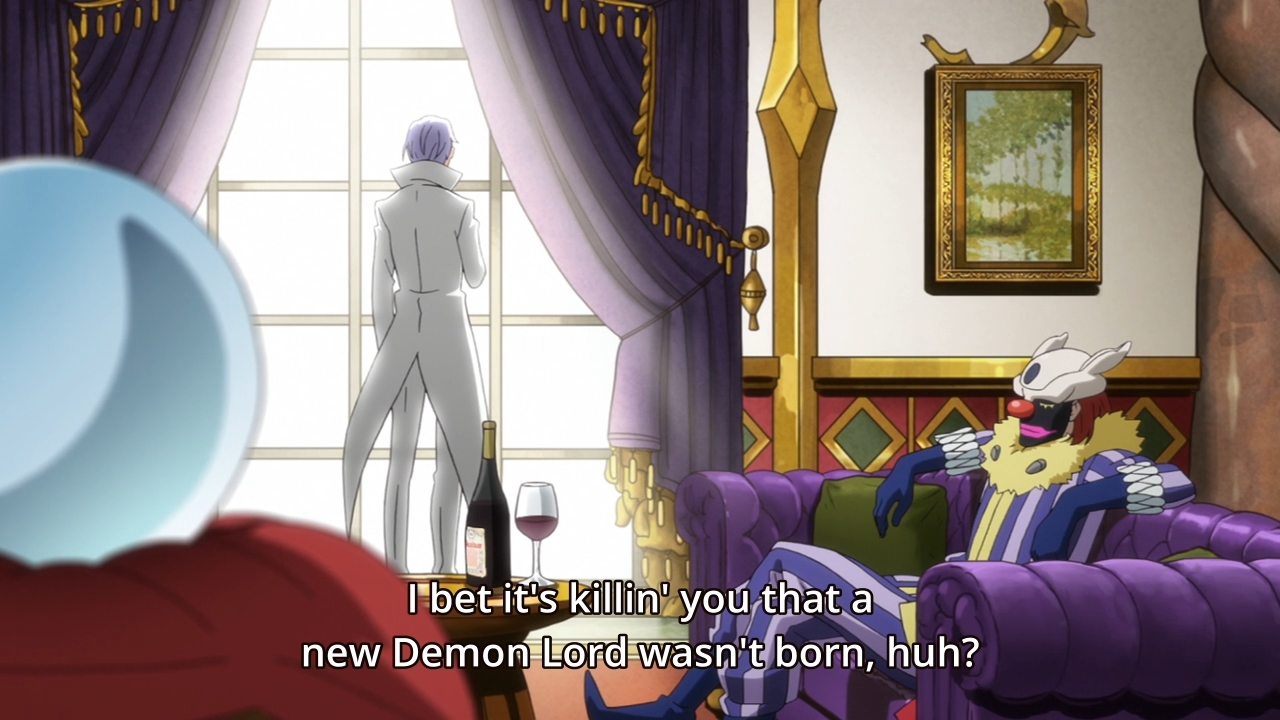 Let’s wrap up a few loose ends. Rimuru tells us that he went and named all remaining 150,000 orcs. He claims it only took him ten days. Let’s say it takes him ten to fifteen seconds to name someone. Let’s say he also has to take a break every so often due to running out of magicules (or whatever the hell they’re called). Well, I’ll just leave it at that. Someone can do the math if they want. Meanwhile, Gabiru ends up being excommunicated. Funny how he received the harshest punishment out of anyone who participated in the “war” unless you count the orc king being eaten. Still, the idiot son has his equally idiotic followers, so he’ll be okay. Last but not least, the bad guys lounge around and act as if this latest setback just made things more interesting for them. Look, that Demon Lord dude can act all cool if he wants, but as far as I’m concerned, Rimuru hasn’t had to break a sweat all series long. Pardon me if I don’t take this oh-so-terrifying villain seriously.