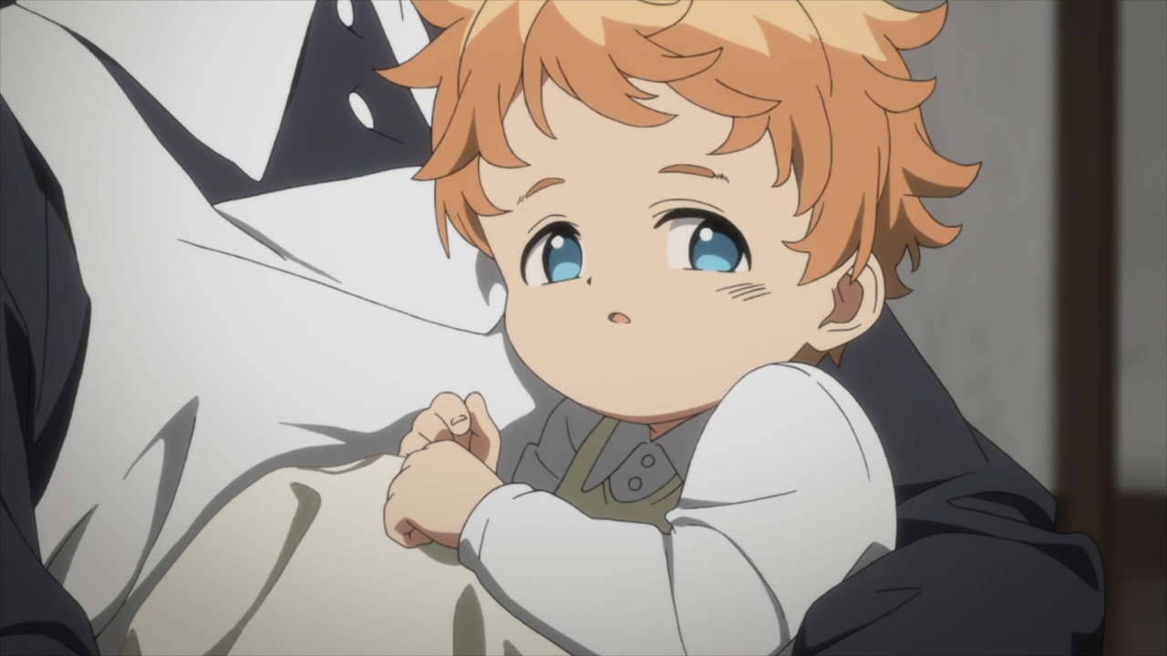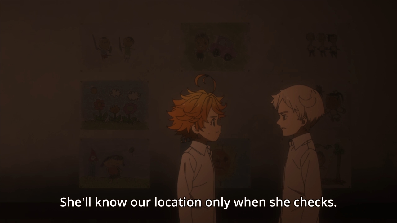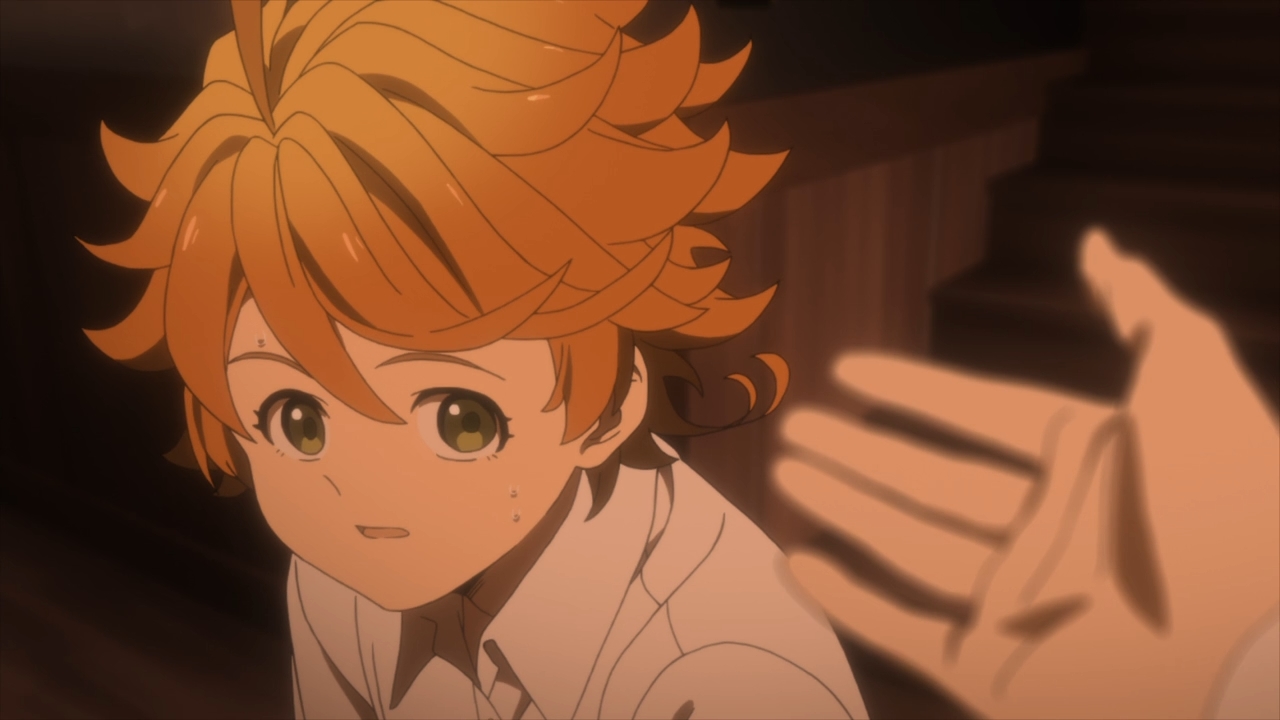 Something that is not convincing me is the direction they chose in the anime is extremely simple and blatant, they cut the scenes abruptly to create artificial tension along with the music and more somber color palette. And there are some things that I don’t understand, like the decision to move the camera to the rhythm of the clock at the beginning, or the close-ups to the faces of the characters as they speak. And above all, the change of the characters because they seem more scared than they should,. Emma started to fake her good-girl face from the beginning, she needed to talk to Norman to realize that. And, in the same way, Norman was not so terrified after the scene of the meeting with Mama when going down the stairs. Emma had to endure it first hand but he remained strong to support her, the story at the beginning was not so exaggerated, while here, the anime tries too hard to provoke fear and tension.