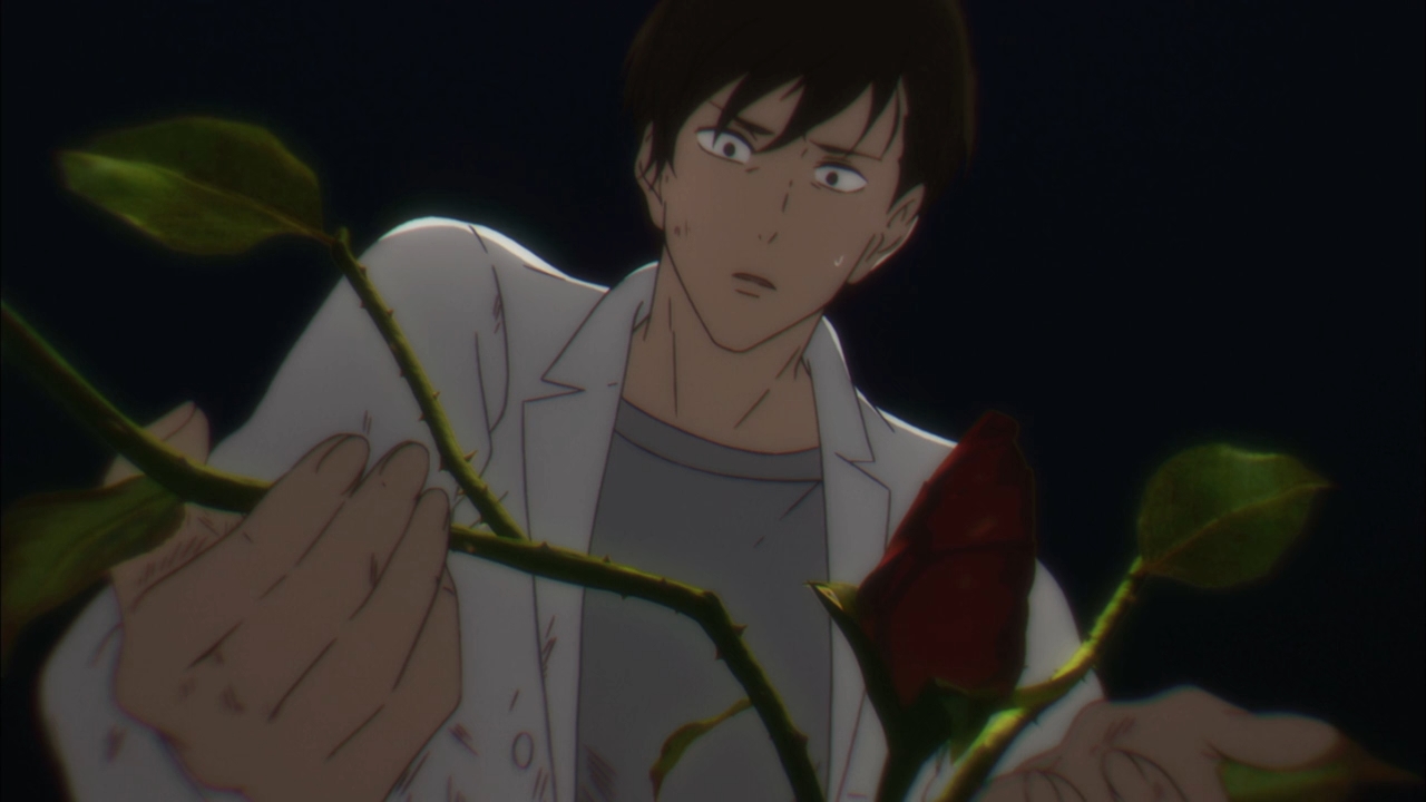 Jin is initially resistant to the Imaginator’s temptations, because honestly, what’s in it for him? Even if he really wanted to touch people’s hearts, what does this do for him? What would he even get out of this? Well, he’s about to find out. One night, a former student of his pulls a knife on him and demands his money. She’s in terrible shape, and it’s obvious that she has a drug addiction. That’s when the Imaginator possesses the girl and starts going on and on about how the poor girl’s going to suffer, but at least Jin can do something about it. Right before the Imaginator leaves the girl’s body, she slits the girl’s throat. As his former student slowly dies in his arm, Jin feels as if he has no choice but to ease her pain. As a result, he reaches into her heart and touches her flower. We are later told that she had died peacefully. So that’s it, huh?