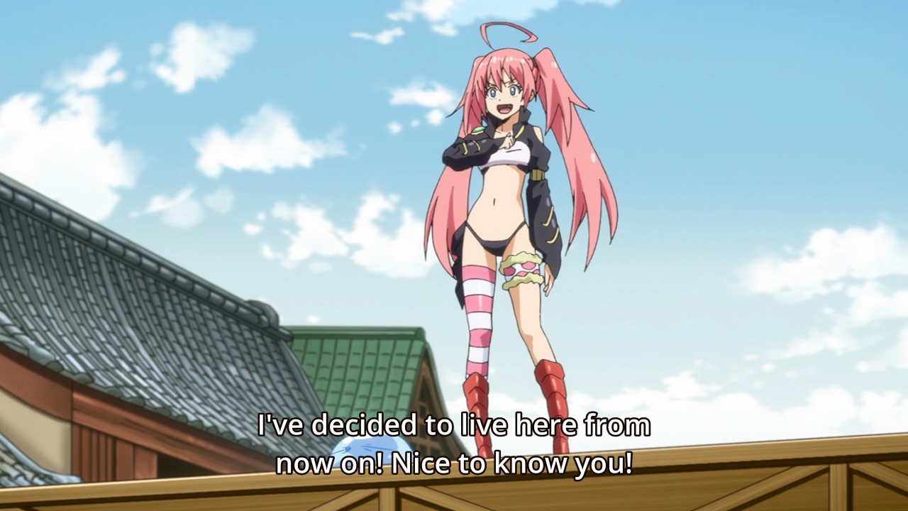 — Time for one last jobber to join the team. Rimuru’s exploits have caught the attention of some pink-haired demon lord by the name of Milim. As a result, she and her gratuitous buttcrack is here to check him out. Sadly, slime boi is unimpressed.