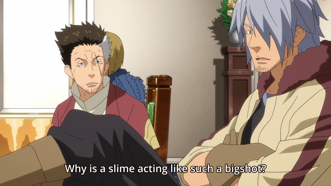 — What follows is the usual: people don’t take Rimuru seriously, because he’s just a “lowly” slime, blah blah blah. Slime boi eventually dismisses his visitors, telling them that Carrion should contact him directly. Afterwards, Rimuru pumps Milim for info on the other demon lords. Basically, it just sounds like they’re bored assholes wanting to create trouble for trouble’s sake.