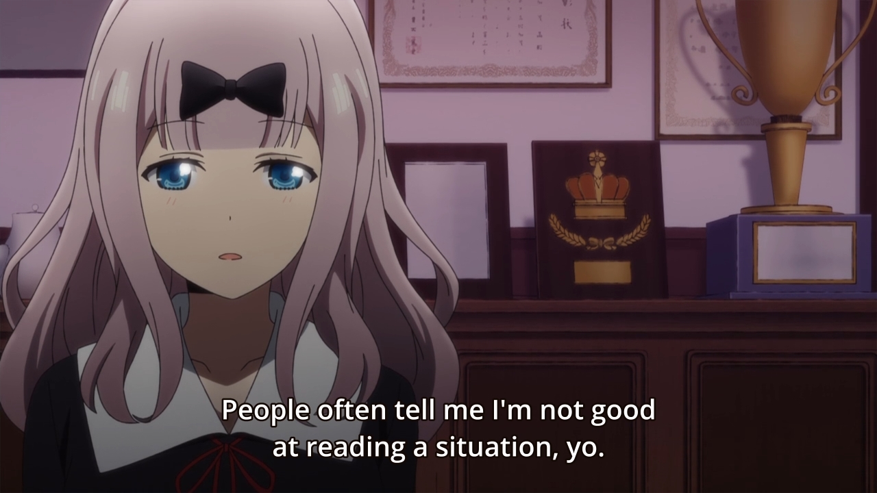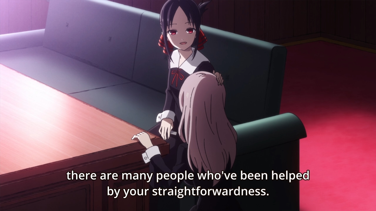 Kaguya is a very well done sitcom and it honestly doesn’t focus much on romance. It’s a lot like American sitcoms to me with development at the end of a season or middle. The fun is when the show establish inside jokes and adds more chars to mix up the formula.