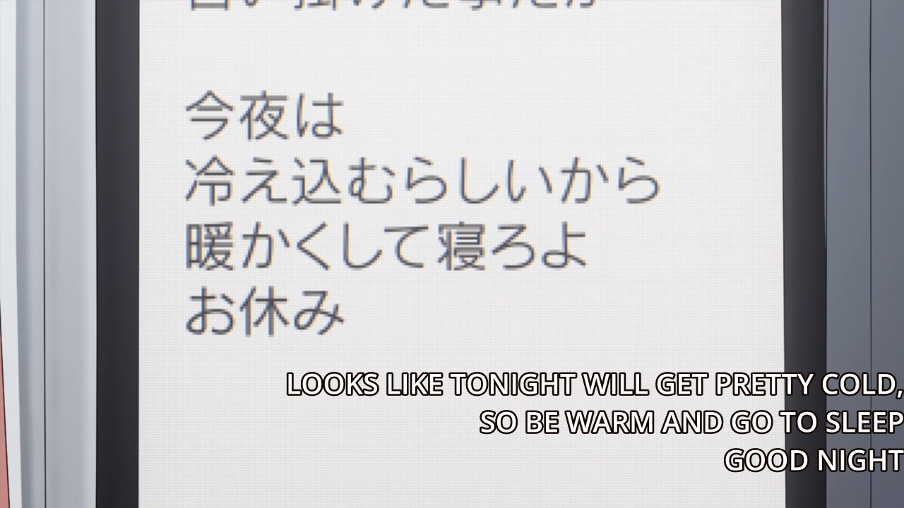 You call that a win?! A cancellation text is a win?! But that’s how it is. Beg for scraps and get absolutely nothing. We thought that the anime would throw us a bone and let us see these two spend time alone together, but nope! Jokes on us! Look, I think the characters aren’t bad. They’re pretty amusing when they’re not shooting themselves in the foot constantly. But this sort of thing bugs me particularly about these “romantic comedies.” When fate conspires to maintain the status quo, it’s cute once or twice. But when it keeps happening for four straight episodes, it just gets old.