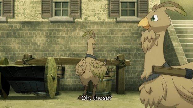 Yeah, what she said! More importantly, you can’t screw a chocobo! How is Naofumi supposed to have sex with that?! We’re trying to build a harem here! All isekai anime are harem anime! That’s just the law! I demand that that this chocobo turn into a girl at once!