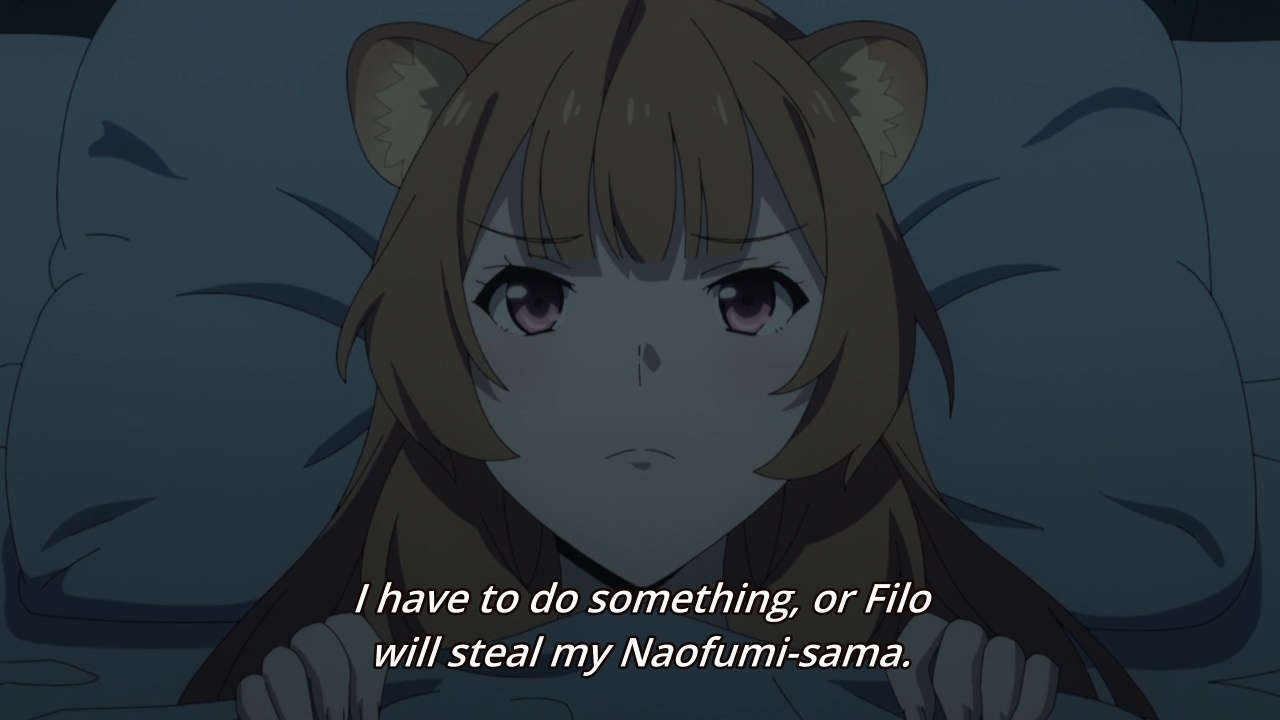 I had a problem viewing this episode, mainly because I was checking every five minutes to see if the FBI was arriving to knock down my door. So much for “not lewding the chicken/racoon loli”. Also Raphtalia is chronologically ten and Filo is practically still under a month old…