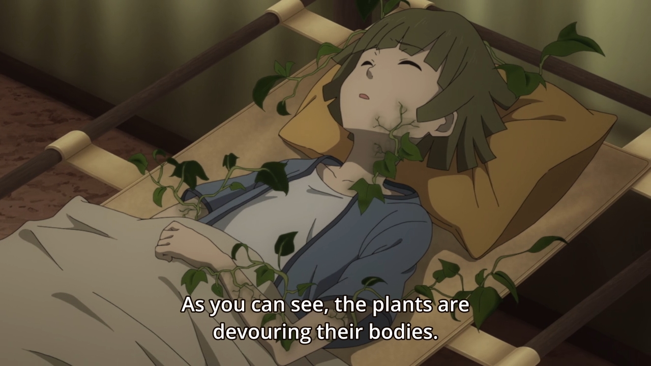 — Anyways, at Naofumi’s command, the girls try to use the herbicide directly on the overgrown plants. Unfortunately, one of its mutations is extremely fast regeneration. Plus, teamwork between the our two “sisters” is not too hot at the moment.