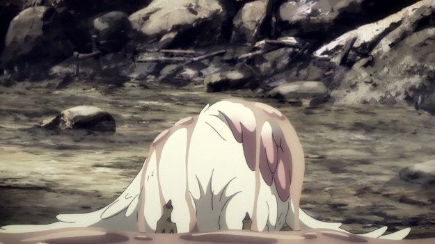 While Naofumi is desperately trying to save the raccoon girl, the zombie dragon suddenly slumps over dead. I guess it’s not much of a zombie.