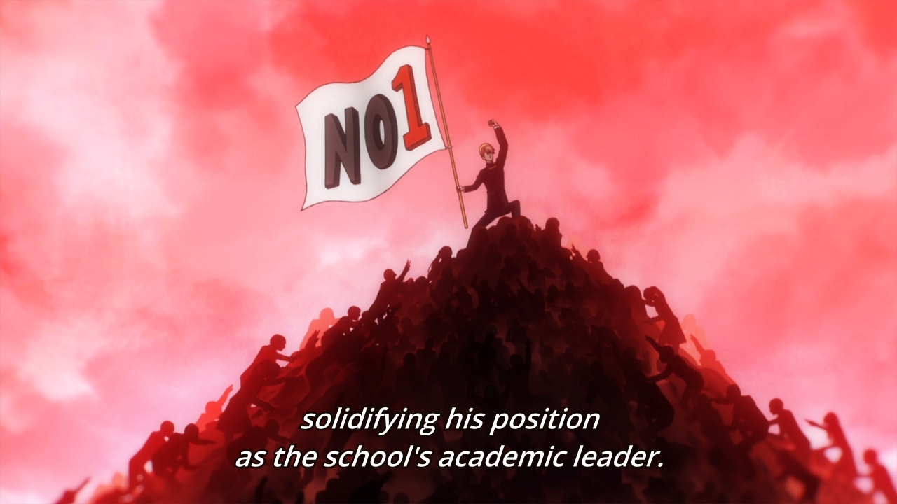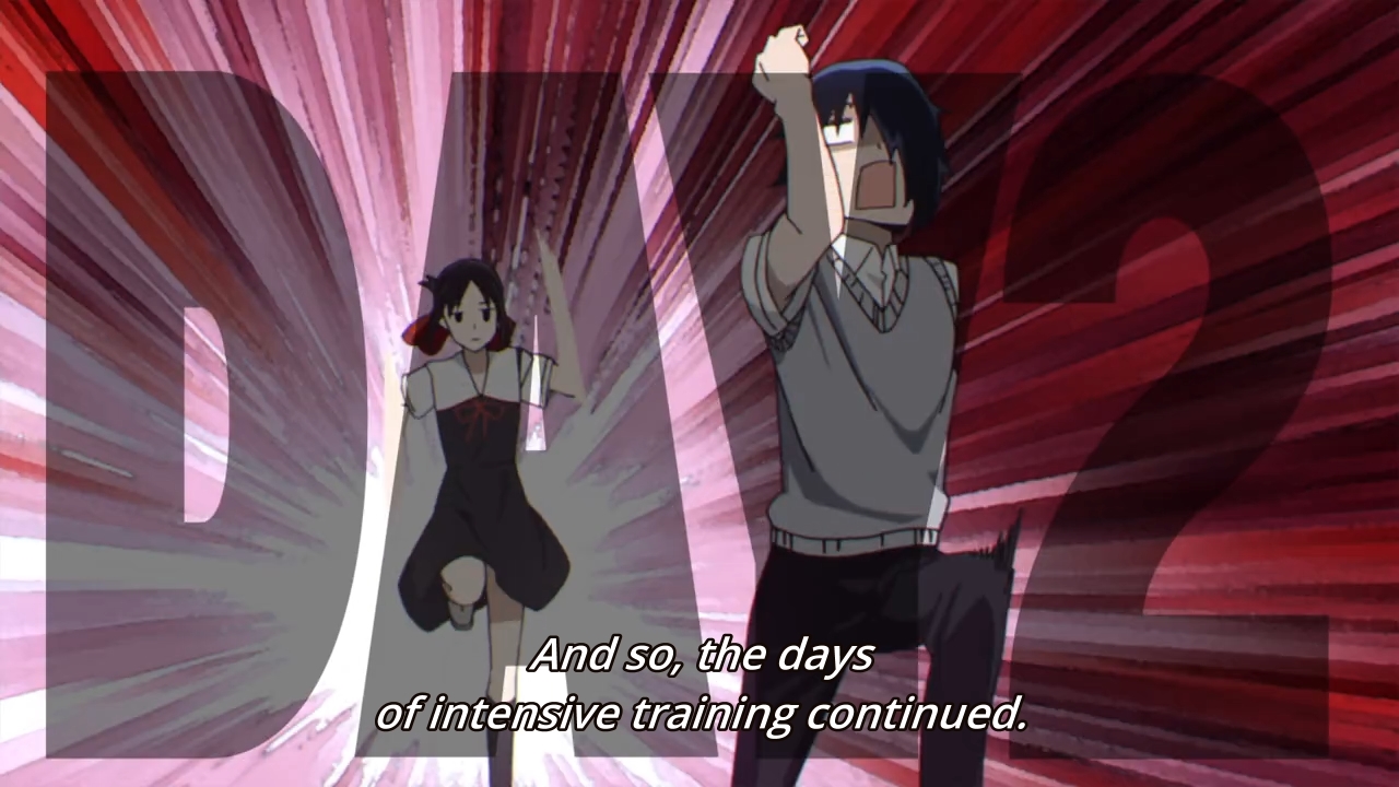 This one is marred by the incessant narration. The guy just keeps yapping and yapping and yapping. The gist here is that final exams are coming up. Miyuki can’t beat Kaguya when it comes to many areas in life (like how she’s supposedly fluent in French), but by god, he’s not going to finish second to her on those exams. But like everything else in this anime, even though the two of them are competing directly against each other, they won’t admit that they are doing so. Honestly, there isn’t really much drama here. Nor is there even much to laugh at. After nearly killing himself trying to study, the guy manages to beat his crush for the fourth time in a row. Good for him, I guess. In front of Miyuki, Kaguya acts as if finishing second doesn’t bother her, but we know better.