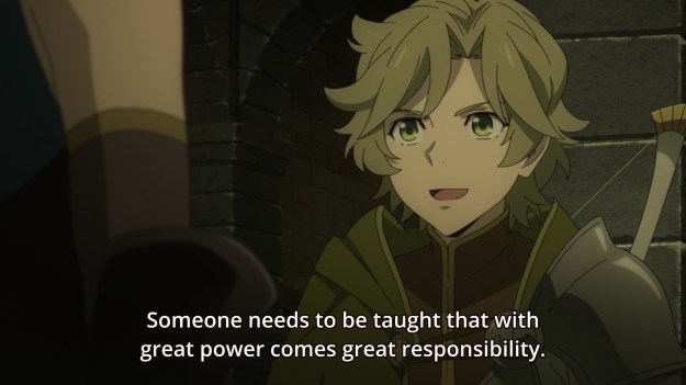 — But we have to ask ourselves if Naofumi would’ve done much better in their shoes. We can’t really answer that with any certainty. Because he’s an outcast, he doesn’t do the usual thing of hitting up a guild to accept quests. Instead, he gets the opportunity to travel around the area as a merchant. This allows him to see the world around them in a different light. Had he not been screwed over at the start of the story, would Naofumi’s story be all that different from the others? It also sounds like the other heroes don’t realize that people are suffering in their wake. Maybe if you let them know what’s going on, they’ll fix the problem. Maybe.