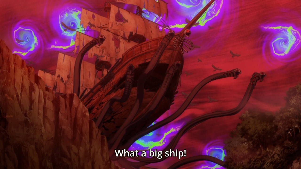 — Anyways, we quickly learn that the other three heroes are not working well together at all. Bow Jerk is just blindly firing arrows at a giant, flying pirate ship from the ground level. On the actual ship, Spear Dick is busy fighting one of the serpent’s heads. He calls it a kraken, but it seems more like a hydra to me. Last but not least, Sword Dork is stupidly killing the same skeleton captain over and over again. When challenged on this, he claims that the undead will eventually go down if you kill it enough times. Ehhhh…