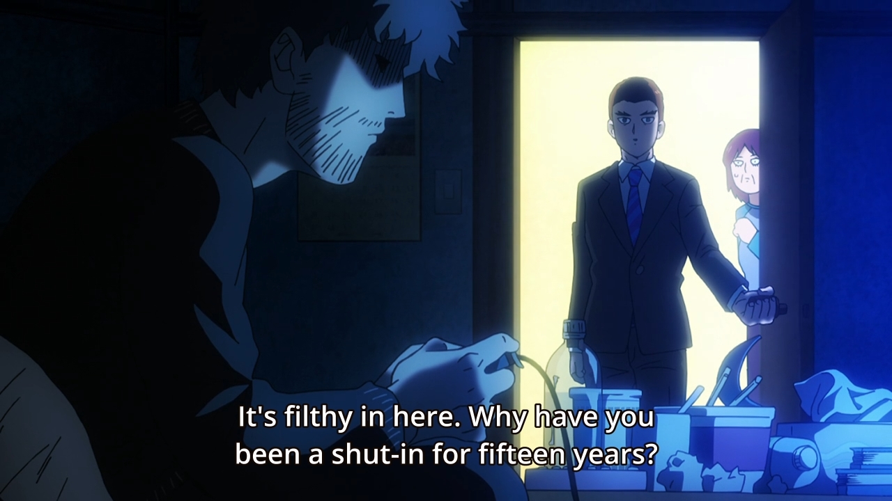 - Last but not least, Mob goes one-on-one against Serizawa. The latter is more than content to fight, but Mob just keeps talking and talking and talking. Eventually, he convinces the shut-in that Toichiro doesn’t see him as a person. Rather, he’s just a tool to be used. Moreover, if Serizawa is looking for a friend, then Mob will be his friend. Our hero then uses his powers not to defeat his enemy, but to show his enemy how much he understands them. Cool, I guess.