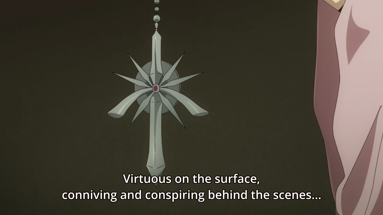 — When the guy leaves the throne room, some woman has nice words to say to him. She also seems to imply that the evil church man from a couple episodes ago might have a bone to pick with Naofumi, but maybe I’m reading too much into the crucifix. Even so, she works for Melty, so she must know something. We also find out that someone is conspiring against the younger princess. Oh ho ho, the conspiracies abound.