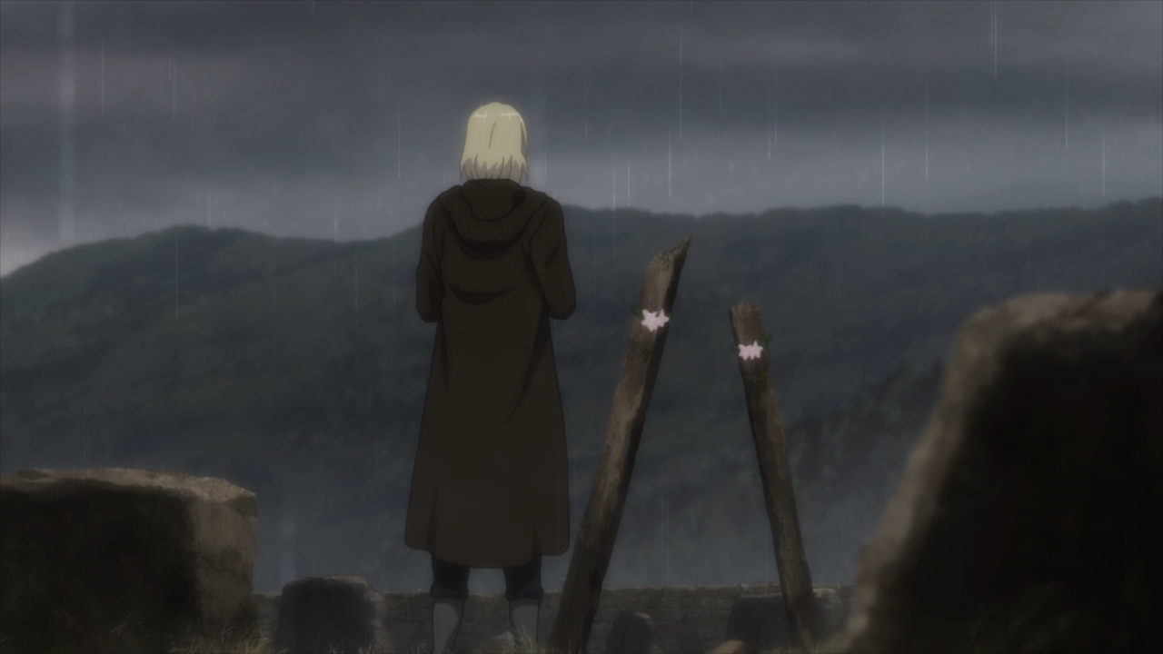 — As for Free, one of his comrades had to sacrifice their life for him. This scene might be emotionally resonant if the guy’s proportions didn’t bother me so much. Look at him. Then look at the guy standing beside him. C’mon, is he like a giant? I dunno, this just seems oddly sloppy.
