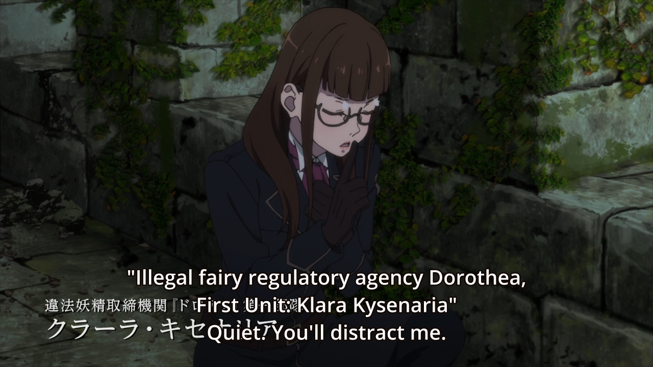 — Alright, so Mariya is different. Everyone else has to undergo a surgical procedure that begins with harvesting an organ from some poor beast. Our heroine, on the other hand, is currently possessed by a fairy. At the moment, however, the show is content with drip-feeding us info about how the whole setup works, so there is still very little to know or understand about fairies.