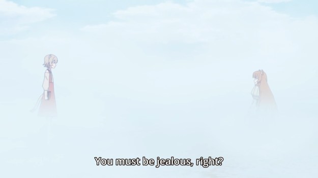 — And as the shit cherry on top of the shit sundae, Naofumi eventually talks his slave girl down. He tells her that killing Fat Evil wouldn’t give her closure. Pfft, yeah, ’cause that’s what our main concern here. Not the fact that he’s still evil. Not the fact that letting him live means he’ll just continue hurting others.