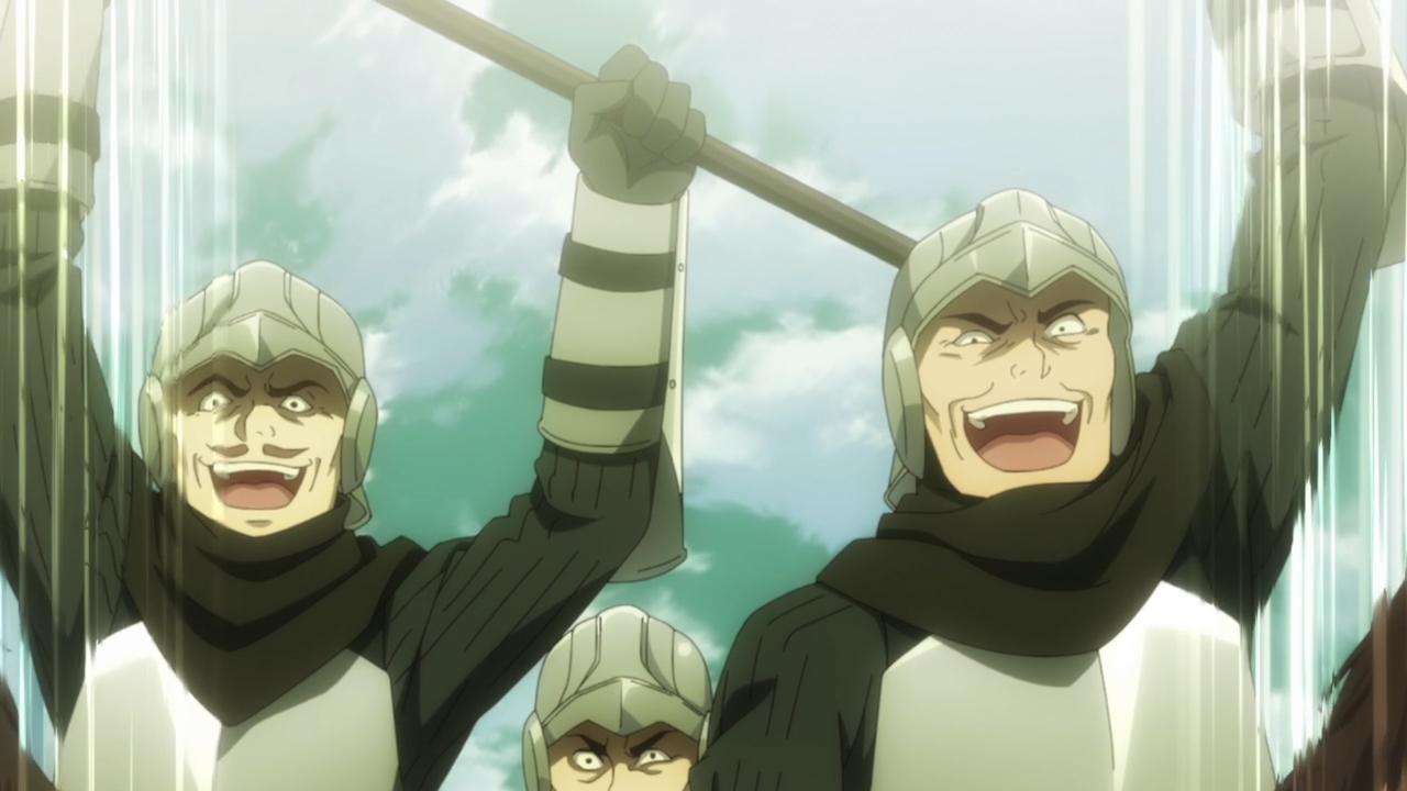 — But before we can answer that question, it’s time to go traipsing around in the past! Granted, I don’t care for any of the characters in this story, so I’m obviously biased against them. But good lord, Raphtalia’s past is just so boring. Hey look, I lost my parents, but we villagers can band together and rebuild what we’ve lost. We’re good wholesome people from the countryside! Yaaaay. And here comes the one dimensional bad guys. Oh nooooo. They also attacked immediately after Raphtalia tells everyone to keep smiling. The timing couldn’t have been more perfect. It’s almost as if this situation was… contrived.