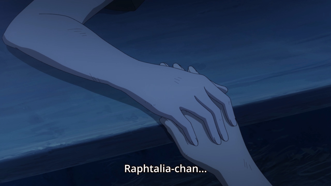 On an interesting sidenote, the light-novel/manga readers are PISSED about this episode. In the original Raphtalia actually *shanks* the guy and then throws him out of the window herself. Not that it matters much, the end result is pretty much the same.