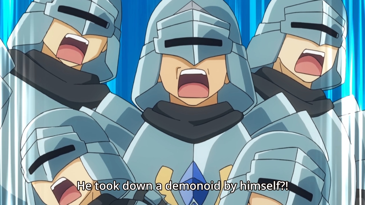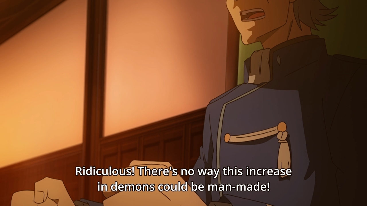 — The problem with this anime’s narrative is that it’s so utterly straightforward. Other stories will build, build, and build until you reach an awe-inspiring climax. Sure, there will be some excitements along the way, but a good storyteller will layer the plot elements carefully. A good writer keeps their audience tantalized and engaged until it all comes together. Not so with Kenja no Mago. If plot point A is introduced, you see the immediate payoff in the very next or almost the very next scene. Case in point, the king and his men discuss how demonoids are increasing in number, but that’s not the kicker. The kicker is that this increase might be artificially induced! Dun dun dun!