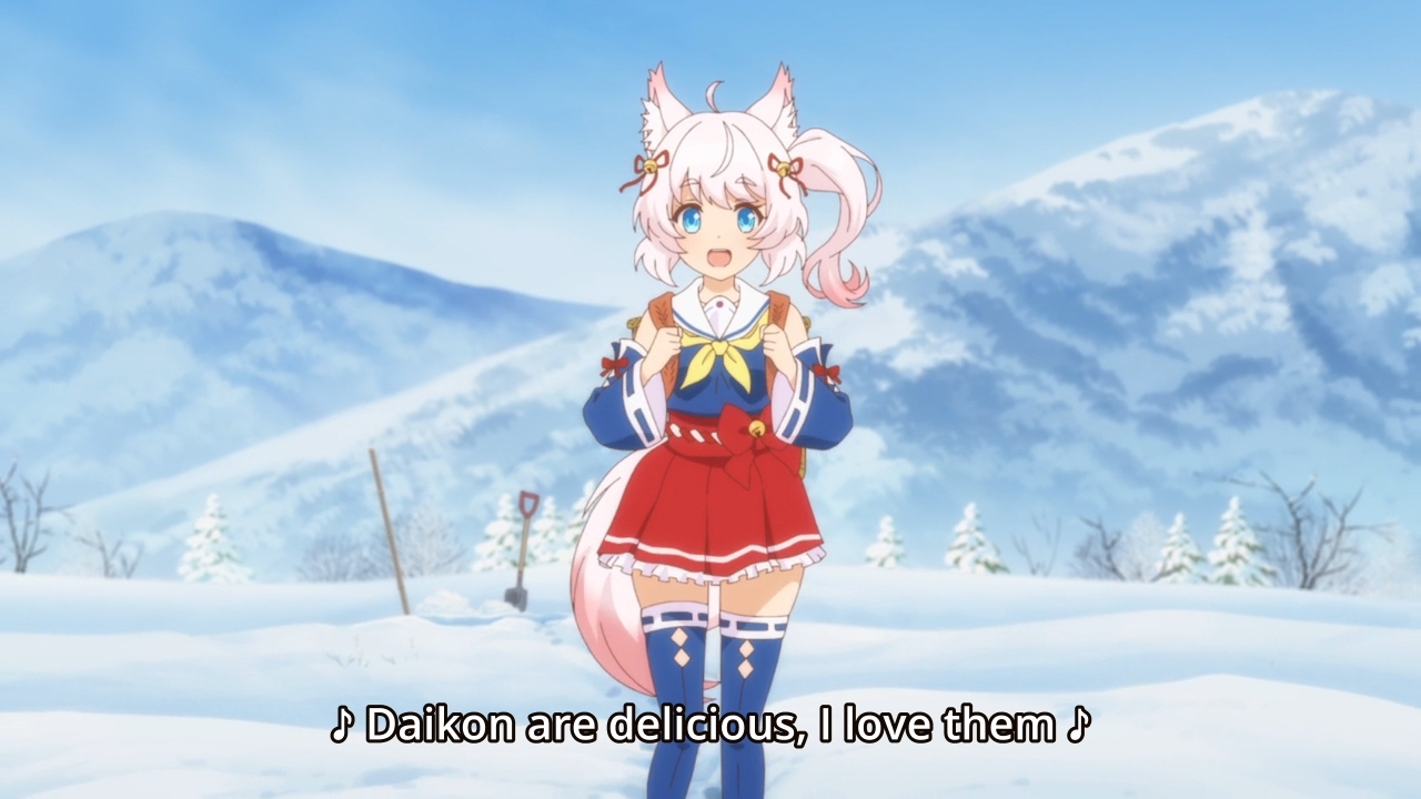 Even though our heroine told us that this was just an ordinary story, I didn’t call it quits on her show just yet. Even though she started singing about daikons, I tried to stick around. But at some point, my mind wandered and before I knew it, I had stopped paying attention to the show. But to be fair, I’d argue that it’s really difficult to focus on a show when it hits a lull in the storytelling, because the internet is now at our fingertips. With a simple click of a mouse, I can better entertain myself by just doing anything else. By the time I tabbed back to the window, there were these three weirdos in front of me. Welp, I’m out.