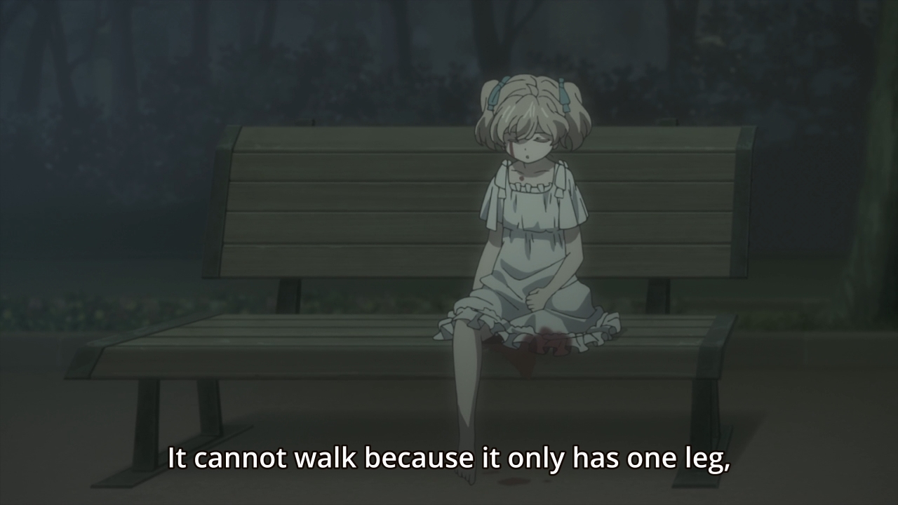 We’ve buried the lede. When Kotoko was young, a bunch of yokai asked her to become their goddess of wisdom. She agreed, and two weeks later, she was found on a park bench with both a missing eye and a missing leg. And yet Kotoko was never phased. Even though she needs a cane for the rest of her life — and even though her depth perception will always suck (presumably) — she sees this as a fair trade in order to become a goddess. That’s great and all, but Kotoko is not the only person with one hell of an icebreaker for parties. When a dangerous yokai is bearing down on her and Kuro at the library, the latter calmly offers up his arm to the rampaging beast. He doesn’t even flinch when his arm gets bitten clean off. Why fear when your arm is just going to grow back instantly? Not only that, the yokai’s flesh turns into sludge as if it had just eaten something terribly acidic. Kuro hen turns to Kotoko and dramatically confesses that he had once consumed two kinds of yokai flesh. I guess this explains why the yokai are scared of him. But we’re not gonna let that get in the way of true love, are we?