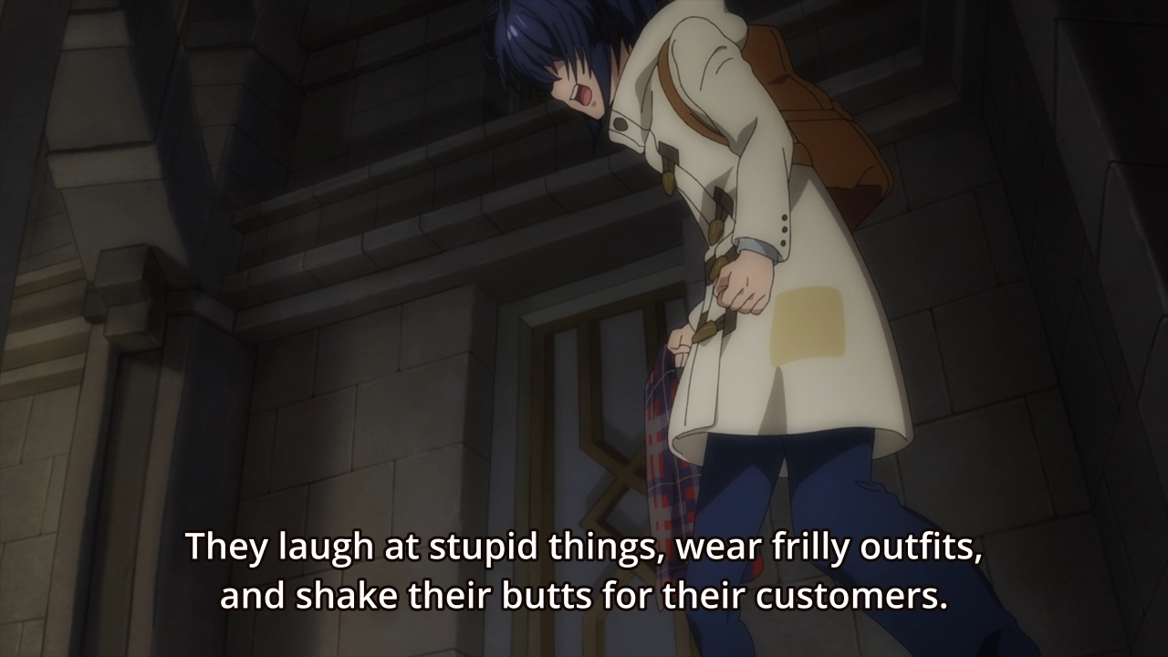 This is an anime about idols, but the premise tries to be as atypical as it possibly can. Eight girls have been chosen to form an idol group. They meet up at a zoo and are promptly led by man whom they’ve never met into an underground facility. Right there, alarm bells should be going off in these girls’ heads. Human trafficking is a thing, yo. But everything else appears to be on the up and up… except for some mysterious Wall that “spits out orders” — orders that the girls have to obey. What happens if you don’t obey? Shrug. Why idols? Shrug. To what aim? Shrug. I almost feel like the show wants to have this mysterious, dreamlike nature to its narrative like that Revue Starlight anime from a while back. But obviously, it’s not quite at the same level. I haven’t even talked about Miu, the main character. She’s this gloomy, introverted girl who is quite cynical about human nature. She’s an absolute disaster when it comes to social interactions. Predictably enough, Miu initially wants nothing to do with this idol project. But when she loses her job and suffers an emotional breakdown, she returns to the group to meet the challenge head on… even if she has no goddamn clue what she’s walking into.