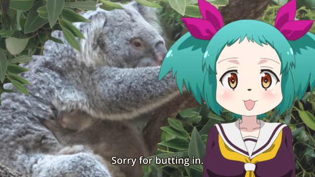 You might wonder if that’s a plate of shit. Yes, yes it is. As it turns out, I’m not the only one with fun facts. The anime happily informs us that baby koalas eat their mother’s feces. Fantastic.