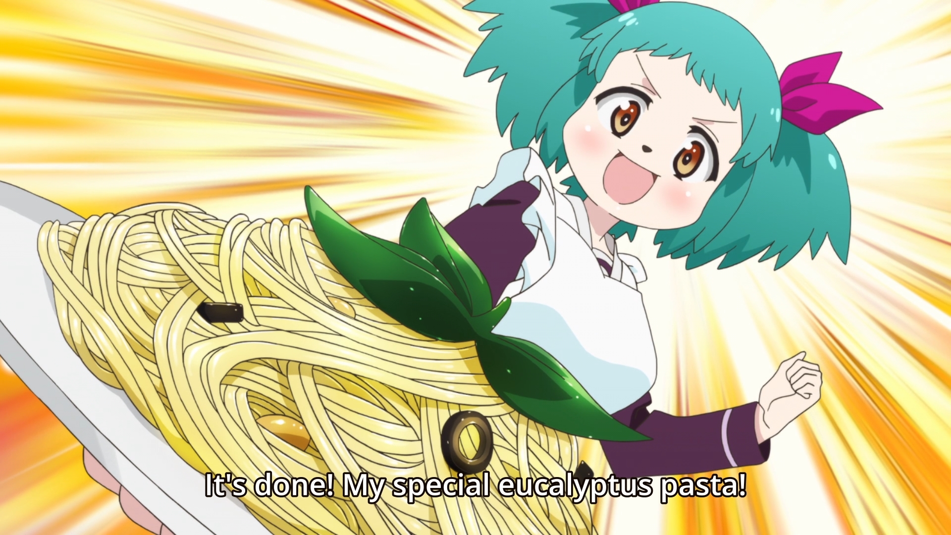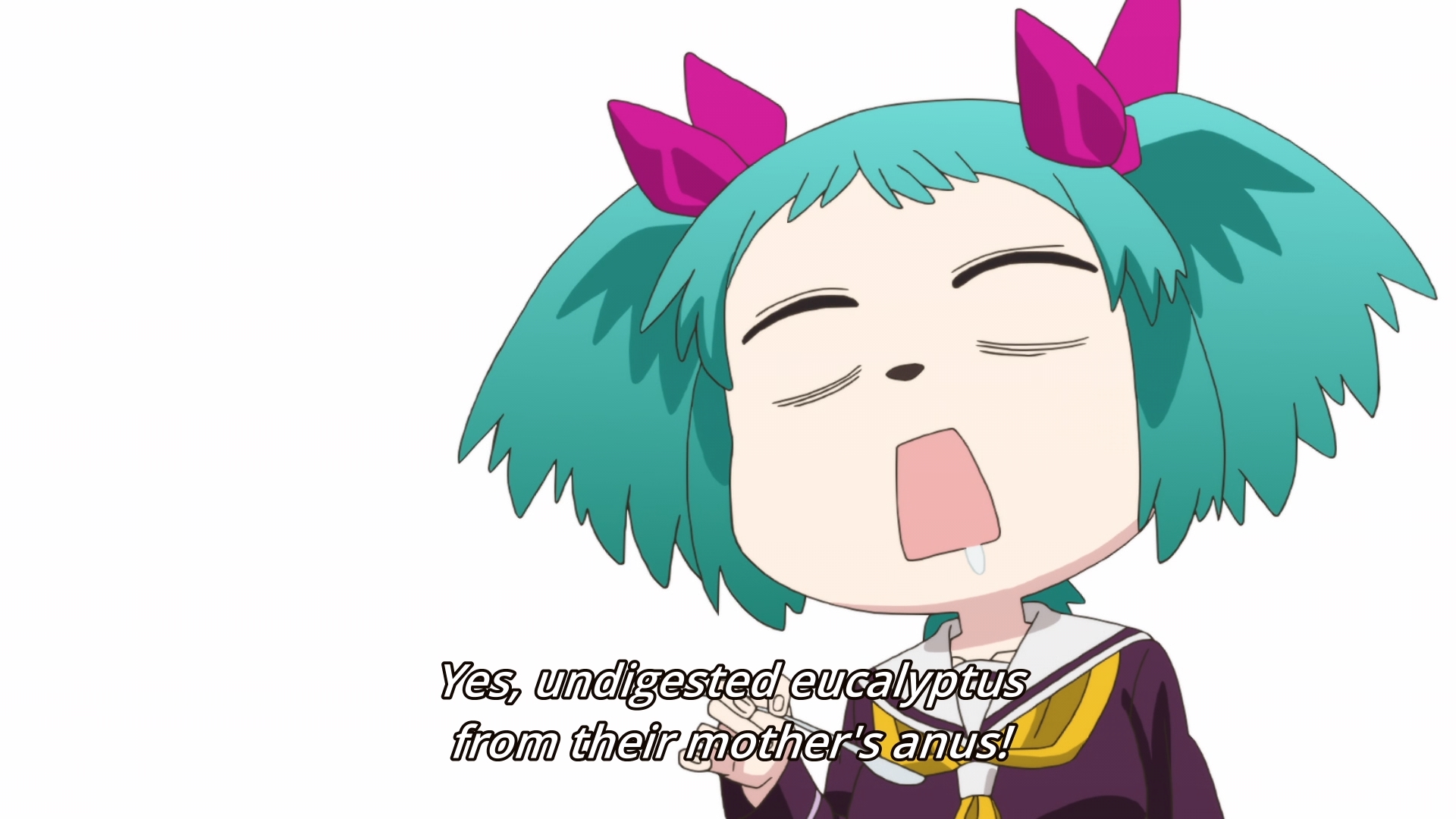 You might wonder if that’s a plate of shit. Yes, yes it is. As it turns out, I’m not the only one with fun facts. The anime happily informs us that baby koalas eat their mother’s feces. Fantastic.