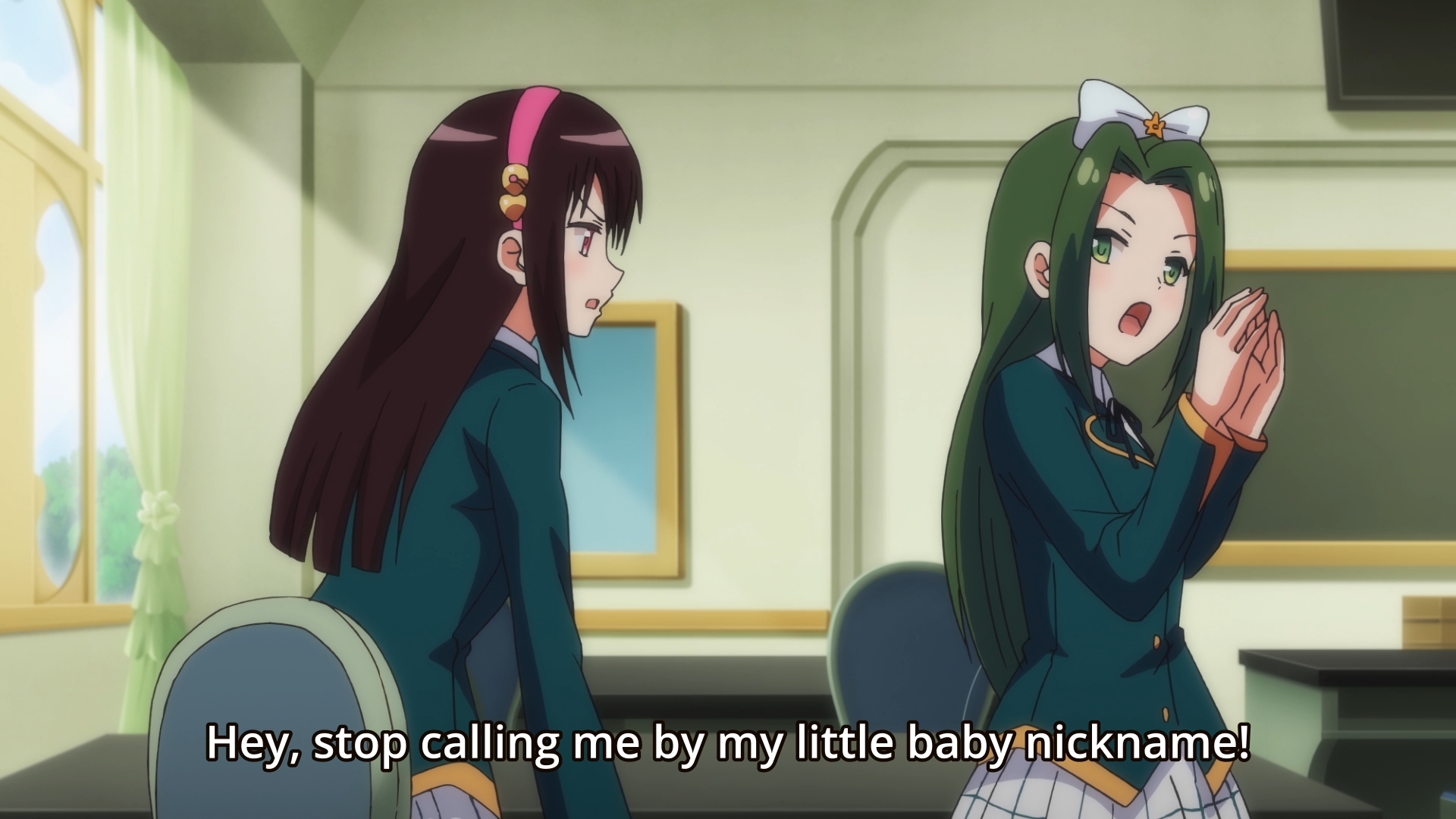 The main “plot” takes a break at this point in order to introduce us to the supporting cast. Unfortunately, it’s like Dumb and Dumber, but with spoiled, rich girls. Hatena repeatedly whines or throws a tantrum throughout the episode. She can’t be seen at school with Makoto, boo hoo. One of her classmates won’t stop calling her Hatena instead of Kana, boo hoo. She doesn’t want people to know that Makoto is a butler at her house, boo hoo. But then we meet Kokomi, who isn’t any better. Every so often, she drops by the mansion to make a huge mess. Why? Because Hatena got a magical scarf, so Kokomi wants a fancy artifact of her own as well. There isn’t a single endearing thing about either of these two girls.