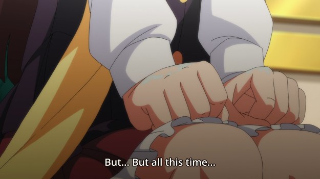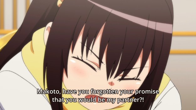 My head fucking hurts. This isn’t how you do tsundere. Tsundere isn’t complicated: you’re tsuntsun sometimes, and then you’re deredere other times. Hatena is not tsundere. She is tsundumbass. And sure, Makoto made a promise, but I like to think childhood promises are null and void when your friend starts acting like a jackass.