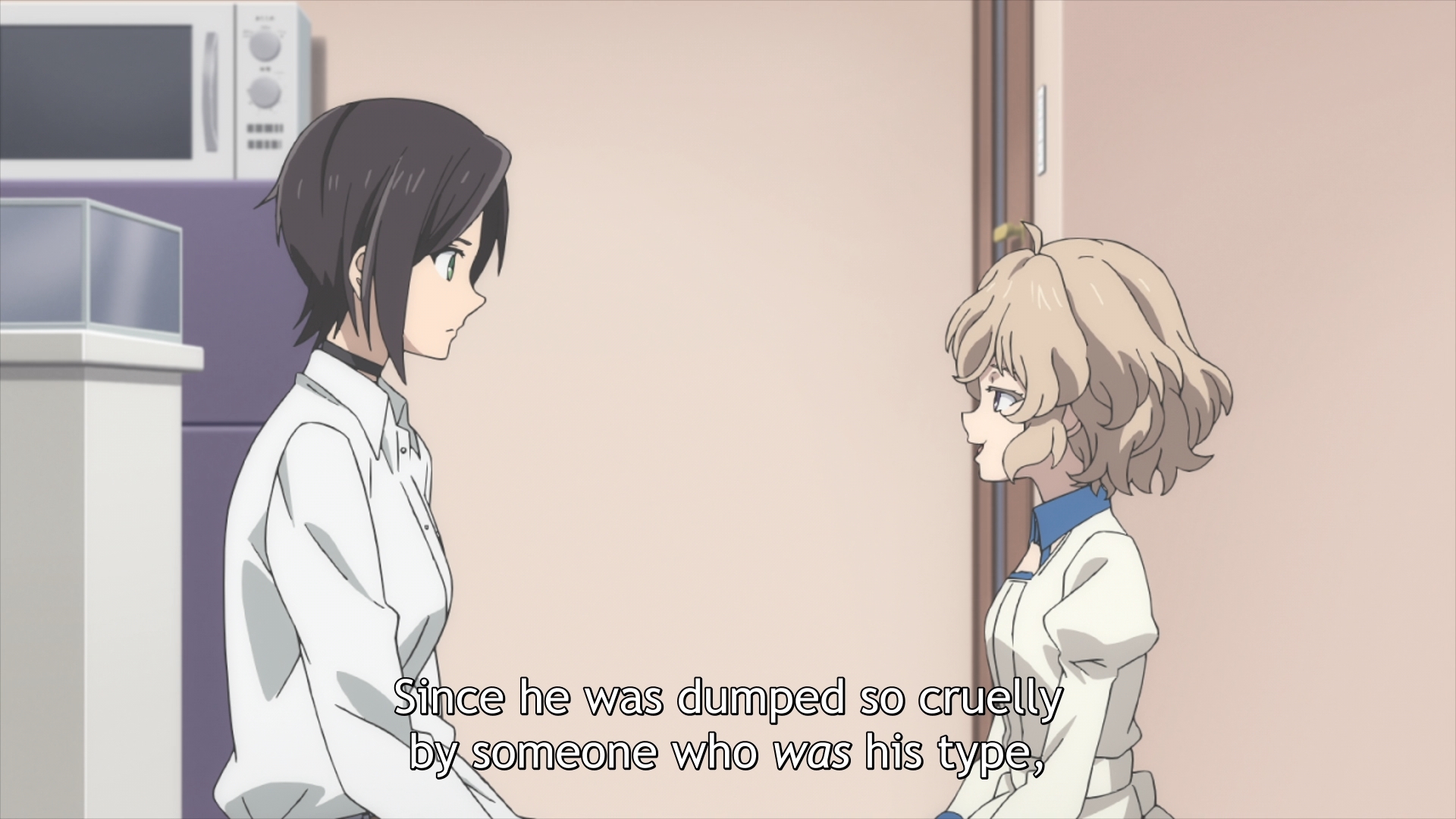 — I don’t think it’s too weird that Kuro hasn’t contacted Kotoko in a week. Saki’s picking a fight for obvious reasons: she isn’t over her ex, and she doesn’t want to let this cocky girl show her up. Still, her assessment is incorrect. Kuro likely knows that if he gives Kotoko any details, she’ll come looking for him. She’s a smart gal. And it’s just as likely that whatever he’s doing is really dangerous. She can die; he can’t. We already know from the previous two episodes that Kuro does care about Kotoko’s safety. This isn’t the romantic love that she wants, but it isn’t nothing.