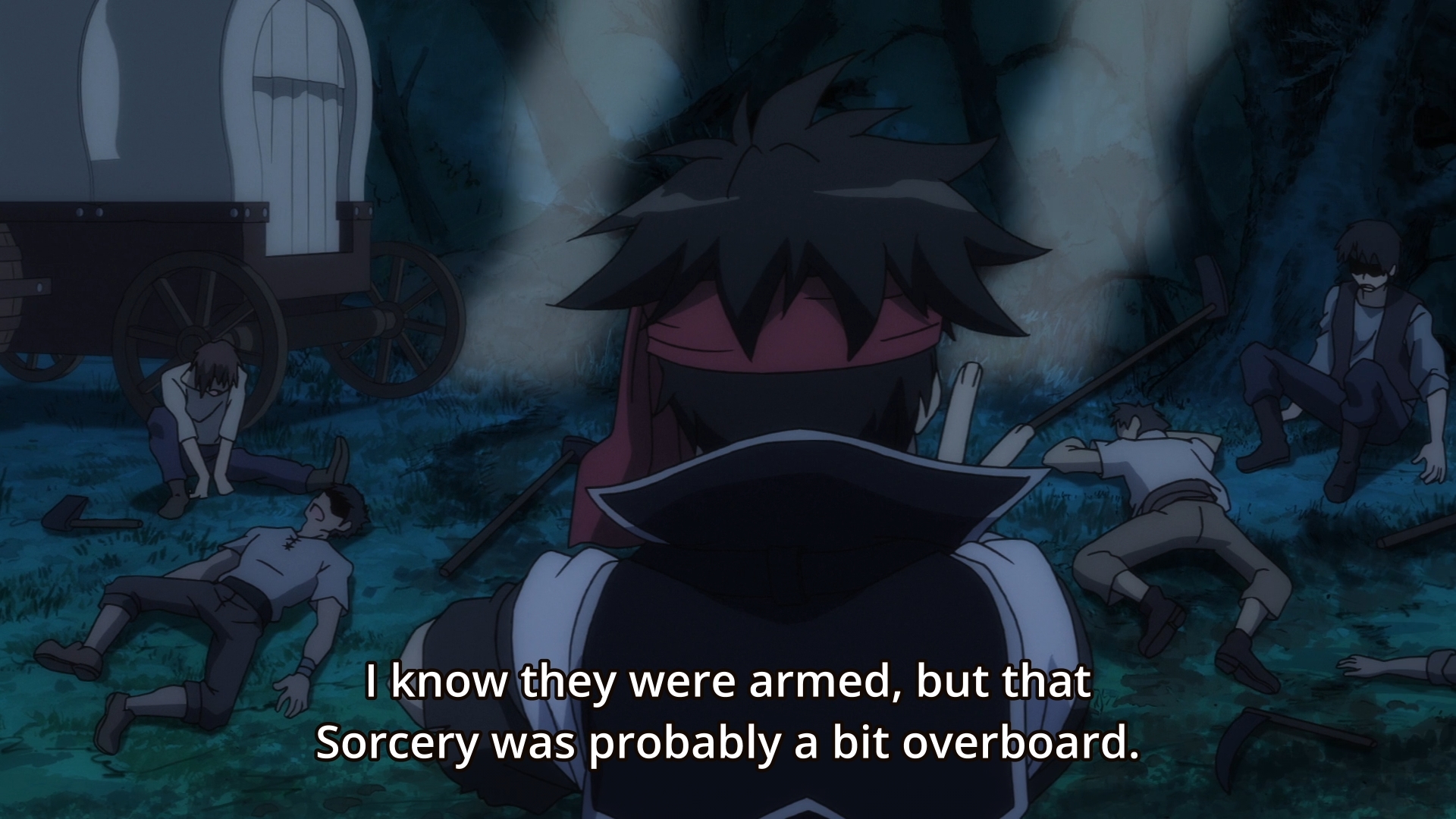 — When we last left off, Orphen was leaving on a journey when he found a couple of stowaways in his wagon. Did he kick them out? Nah. And is he going to keep complaining about them tagging along? You betcha! We’ll find out later, however, that Orphen is half tsundere and half broke. Money talks.