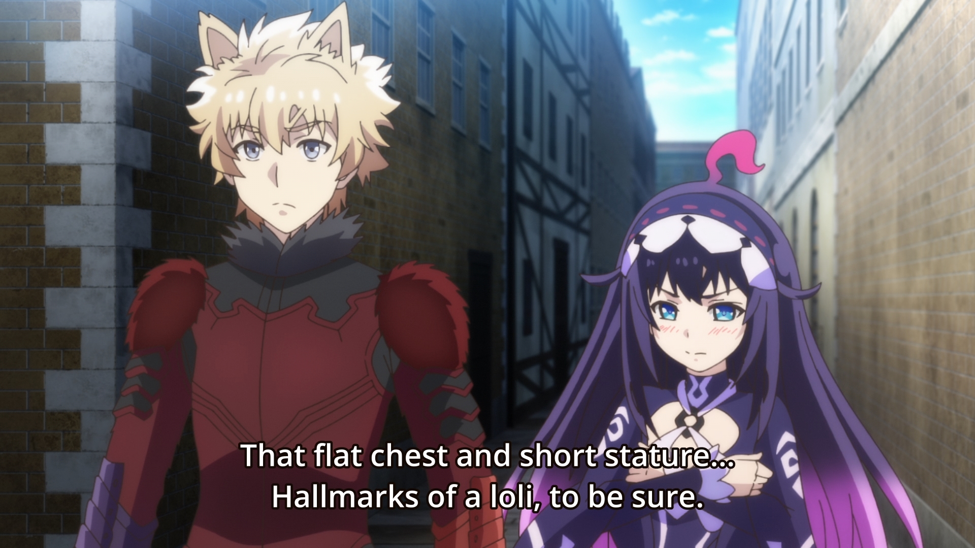 — Anyways, our hero has to jump in and help Hugo out. We meet Cocy, a monotone, ushanka-wearing loli who accuses Nemesis of being a loli. Isn’t this like a pot calling the kettle black? Also, this is what I meant earlier when I said that the anime is taking a dark turn without giving us any sort of advance notice. I still feel like I’m watching some goofy ass adventure story.