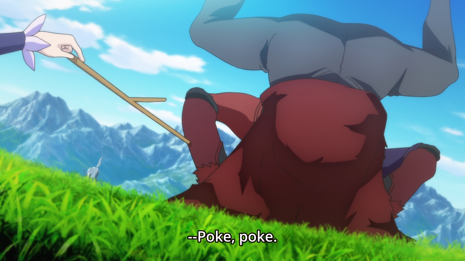 — So the bull demon taunts Hugo by pulling out a bag of children’s heads that have been severed from their bodies. C’mon, what is this? First, you shove mecha into this show, and now, you have the bad guys gobbling up the heads of children like M&Ms? It’s like the show just randomly decided to become super dark, but it did it so fast that the tonal shift couldn’t even hope to keep up. It still feels like we’re watching a generic light-hearted isekai.