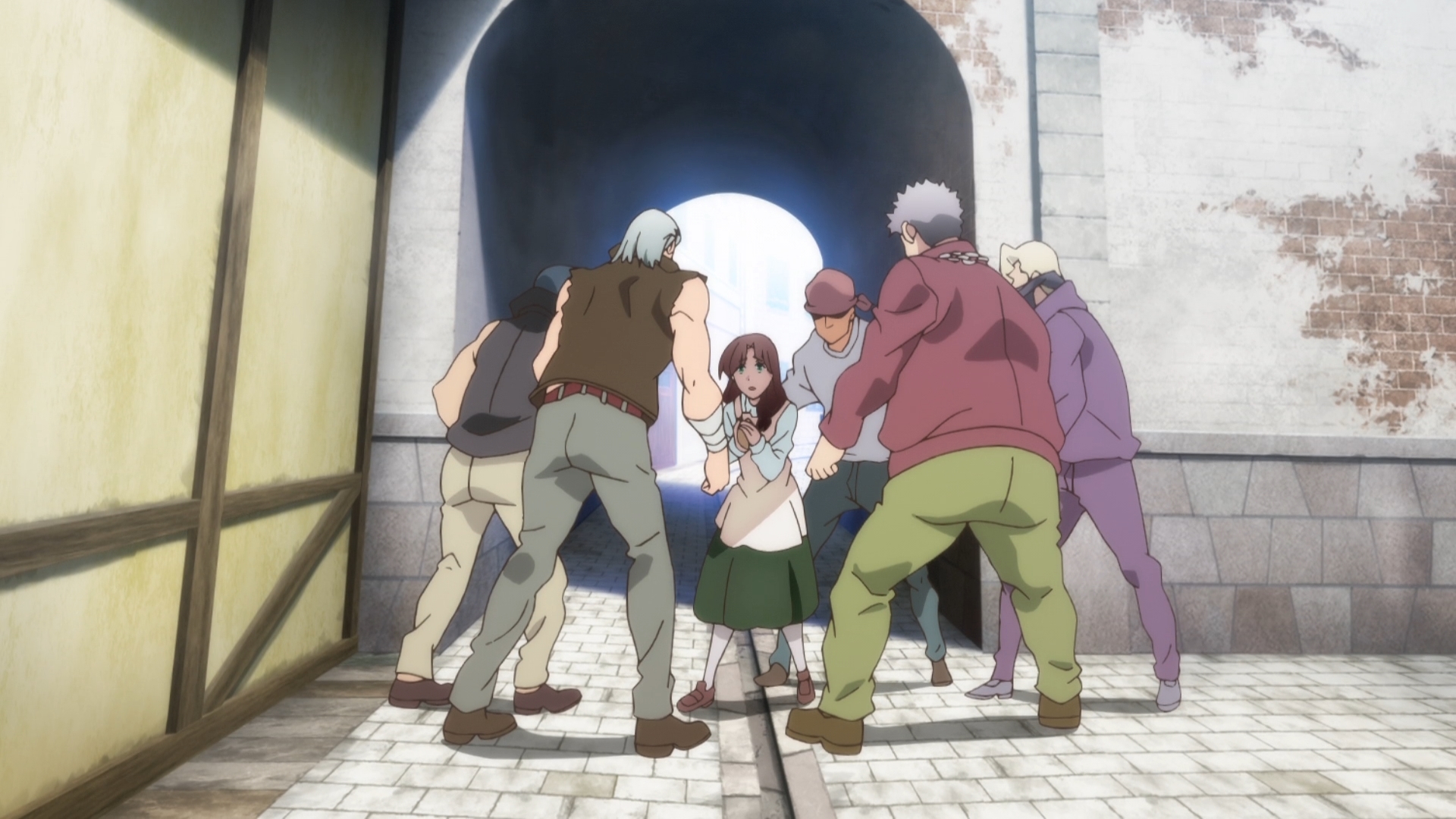 — Our hero’s about to jump into action when this French dandy suddenly shows up. So this is our mecha pilot. And in order to call forth his mecha, he needs quite a bit of setup time — setup time that he can’t afford when thugs are bearing down on him. Oops.