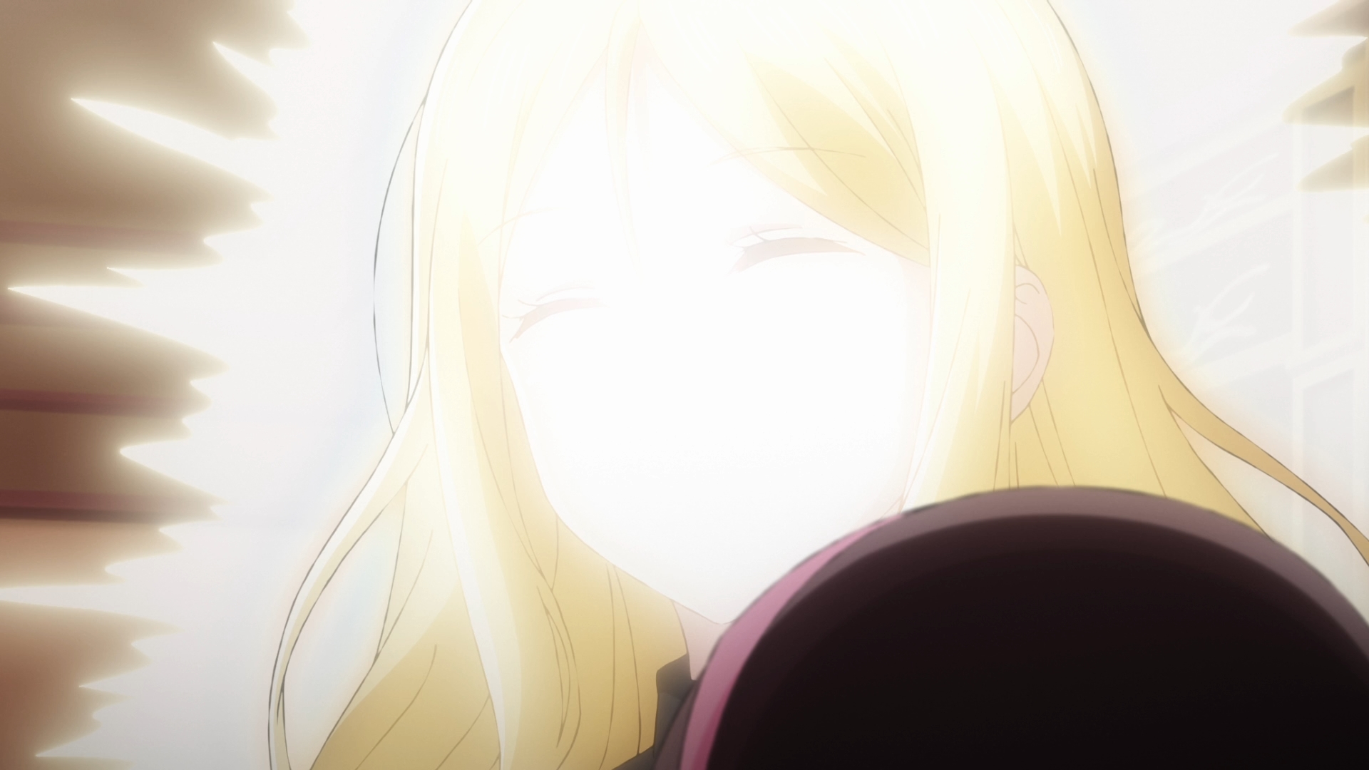 So what’s new? Well, even though Yumemi made up with her classmates, she still refuses to go to school. Yep, this subplot again. Alright, what’s wrong this time? Well, as if we couldn’t already guess, the younger Hoshisato sister is much more talented than her sibling. She’s so talented that she can create artifacts much like her mother. Unfortunately, Yumemi’s creations are strongly influenced by her emotions, and right now, she’s not feeling too hot. She had created a really ugly bear, and it attacked her classmates. And that’s why she’s shutting herself away from the world again. That’s it. That’s the story. We spend an entire episode trying to figure out what her problem is, and it turns out that the best person to help these girls with their issues is…
