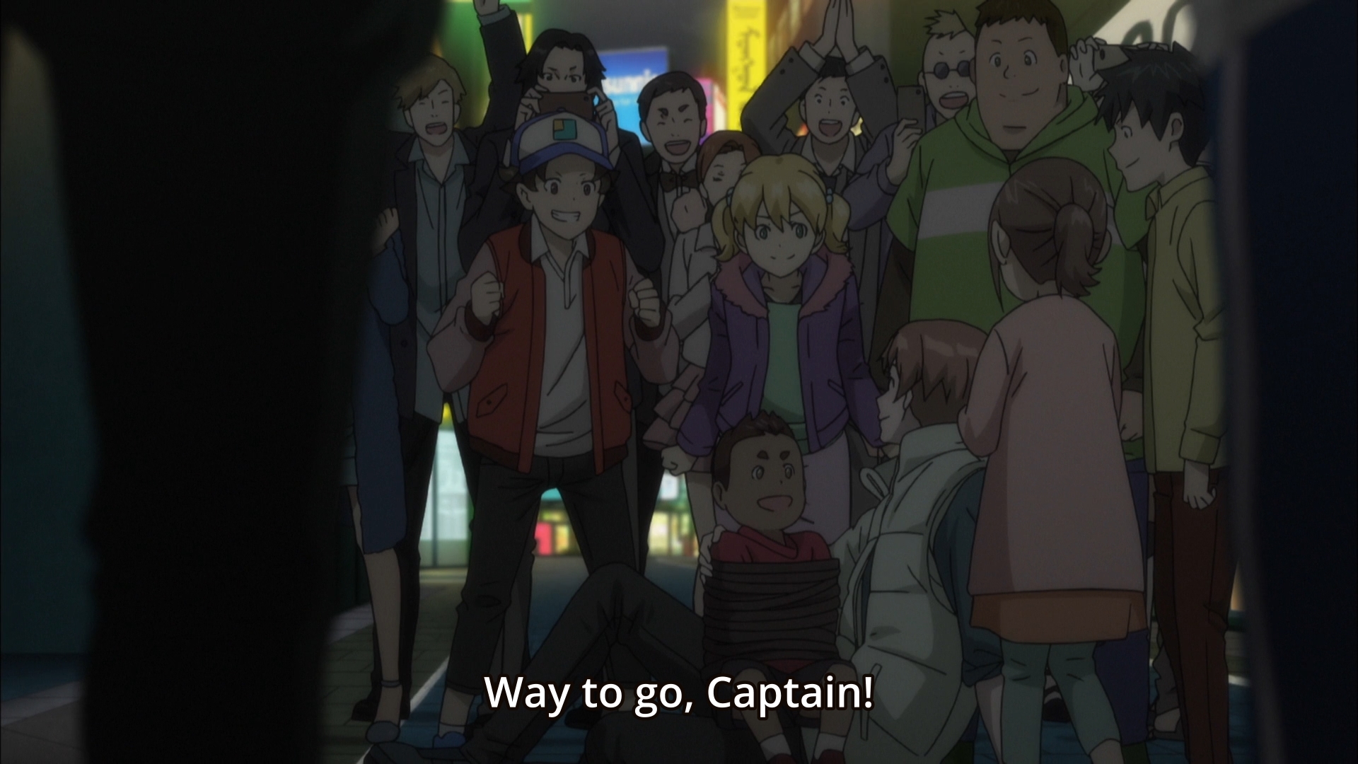 — The one week hiatus hasn’t helped the anime improved its storytelling. We still get riveting moments like Kaname and friends standing around in a hotel room, carefully reading the rules to the game. Yawn.