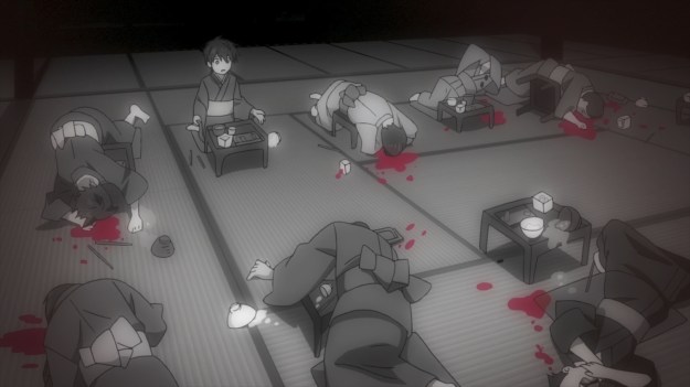 — But what happened afterwards? I’m sorry, but this many children don’t just die without consequences. According to Kotoko’s narration, his grandmother gathered kudan and mermaid meat secretly, so I have to assume that a lot of these kids’ parents — if not all of them — had no idea that she was going to experiment with their lives. But even if we grant that the entire family somehow approved of her nefarious intentions, this sort of thing doesn’t go unnoticed by outsiders. People and especially the government don’t just shrug when a bunch of kids go missing.