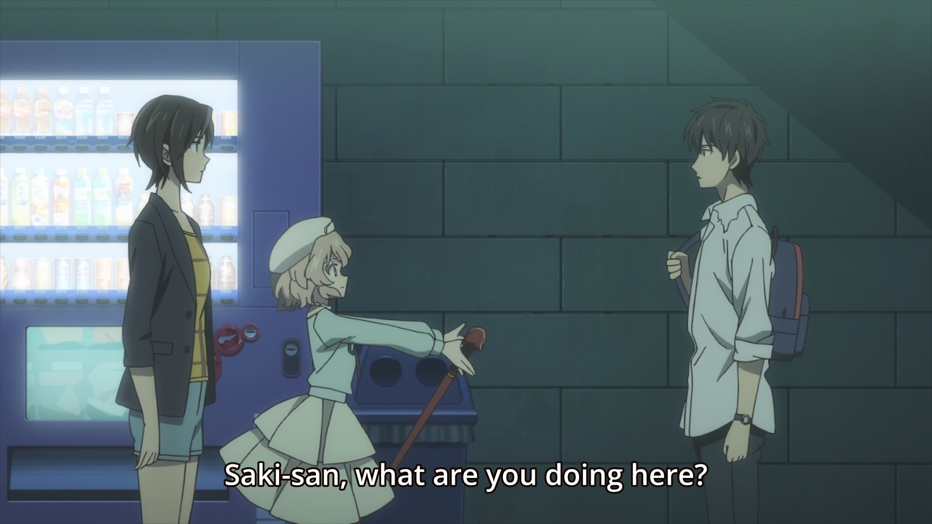 — Luckily for her, Kuro doesn’t have much of an emotional reaction to seeing Saki either. He simply gives her a half-smile, but he looks off to the side as he does so.