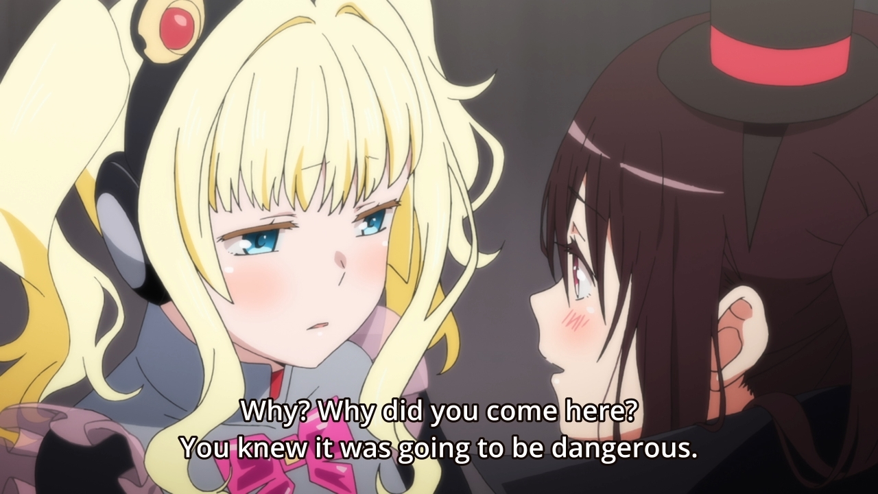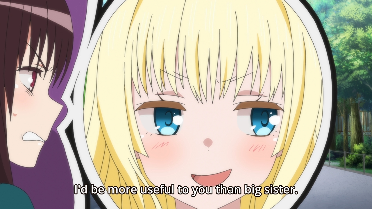 — Obviously, Hatena has an inferiority complex. Not only is Yumemi is more talented (she can make Artifacts like Maeve), she also has pretty blonde hair like their mother. In a better anime, we would explore this complex with sensitivity and deftness. But in Hatena Illusion, we get to see tsundumbass bumble her way into the world’s most obvious trap.