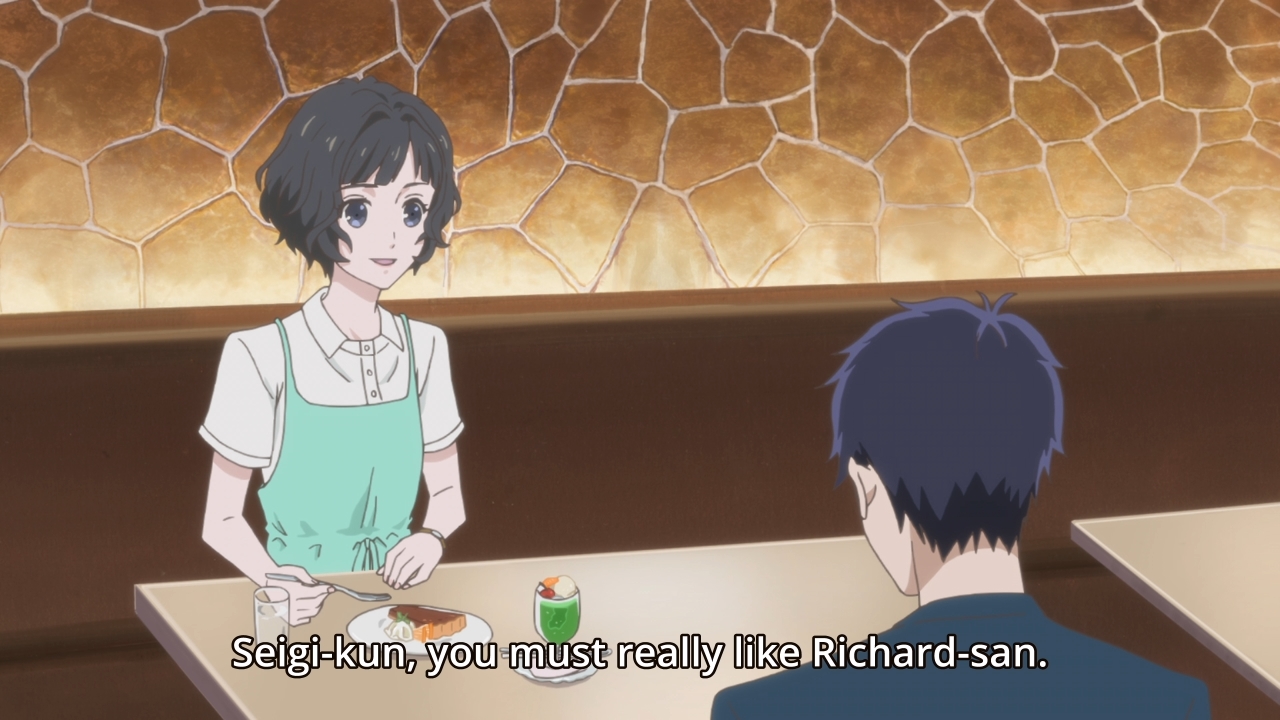 — Afterwards, Richard stares at a gemstone and reminisces about the good o’ days when he was also a scamming scalawag. Turns out our golden boy isn’t quite a saint. No need to worry, though. I’m sure Seigi would still take a bullet for him. Over Shoko too!