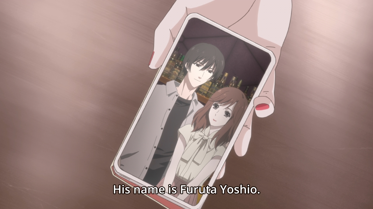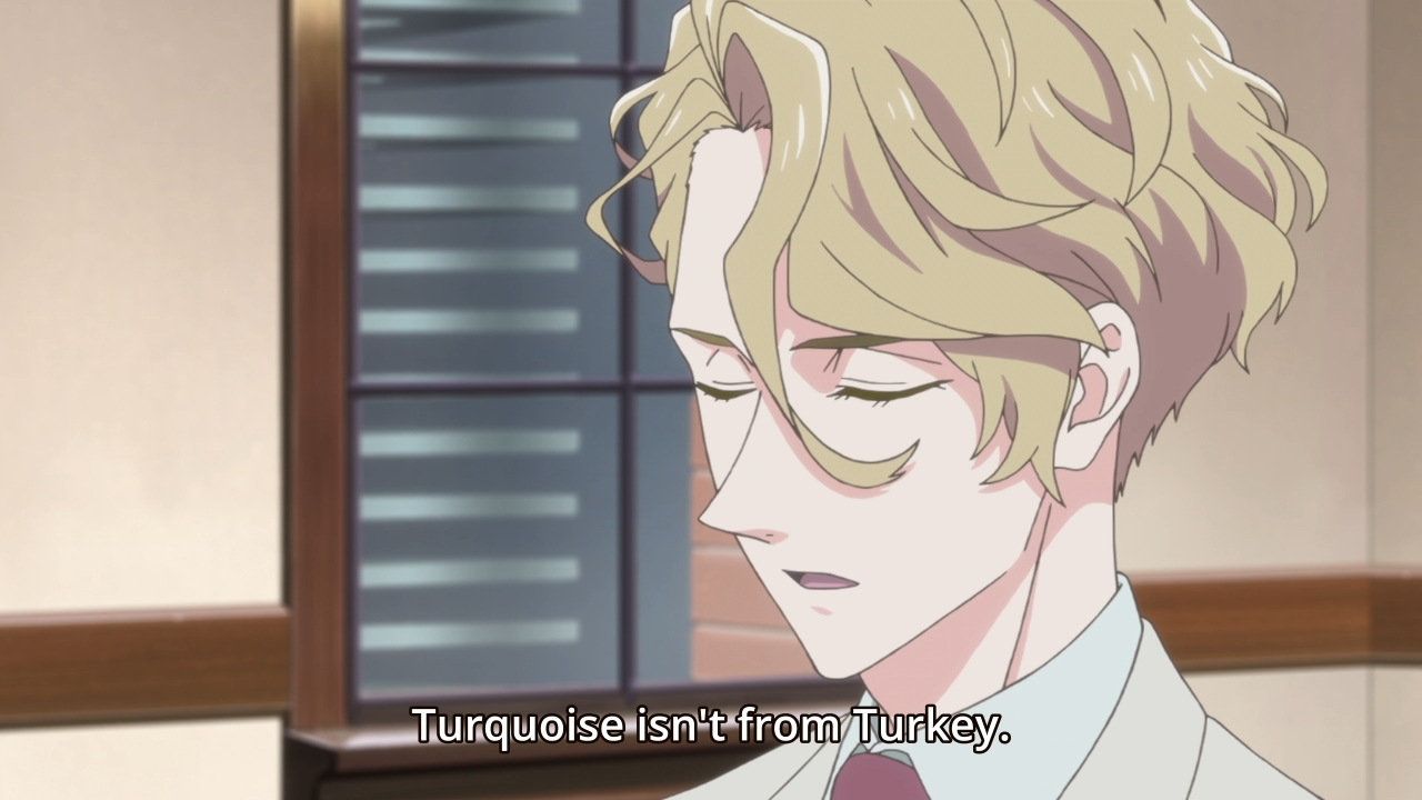 — Alright, let’s just get right to it. The poor woman of the week is a colleague of Haruyoshi. Maybe he has feelings for her, but she’s currently hung up on her suddenly missing boyfriend. All she has to remember him by is this turquoise.