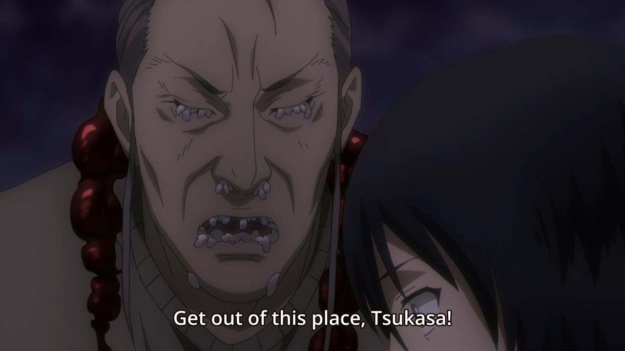 In the second half of the episode, we see that Tsukasa is out of critical danger but still severely weakened and suffering from freaky nightmares. He can’t even stand on his own two feet. Being crushed is so horrible that it can apparently turn your hair grey. Unfortunately, the Company is ever-demanding. As a result, Hiroki will have to take the next job, and he’s obviously not happy about it. He and Tsukasa share a private conversation where the latter swears to the former that things will get better. But instead of running away like Hayashi, he intends to become so indispensable to the Company that they’ll have to start ceding to his demands. I dunno, man. Sounds kinda arrogant. Sounds like a young, brash man who thinks he can take on the world. Plus, I just have no sympathy for Tsukasa. I only feel bad for Meiling. Like I said last week, the rest of these characters all suck.
