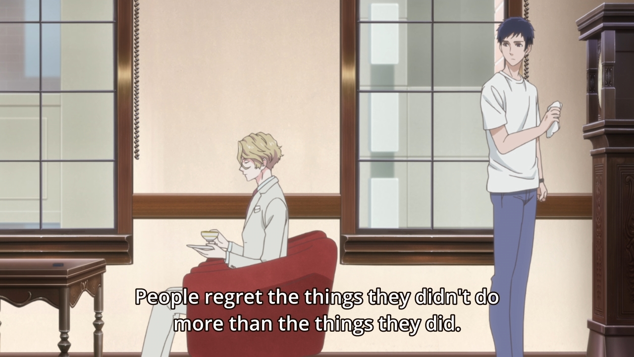 — Seigi slinks back to Richard with the bad news, so the latter tells him off… then we get another story. It’s nothing major, really. He simply expands on the previous idea that we shouldn’t live with regrets. Richard had a bae, Richard lost the bae, Richard didn’t have the guts to fight for bae.